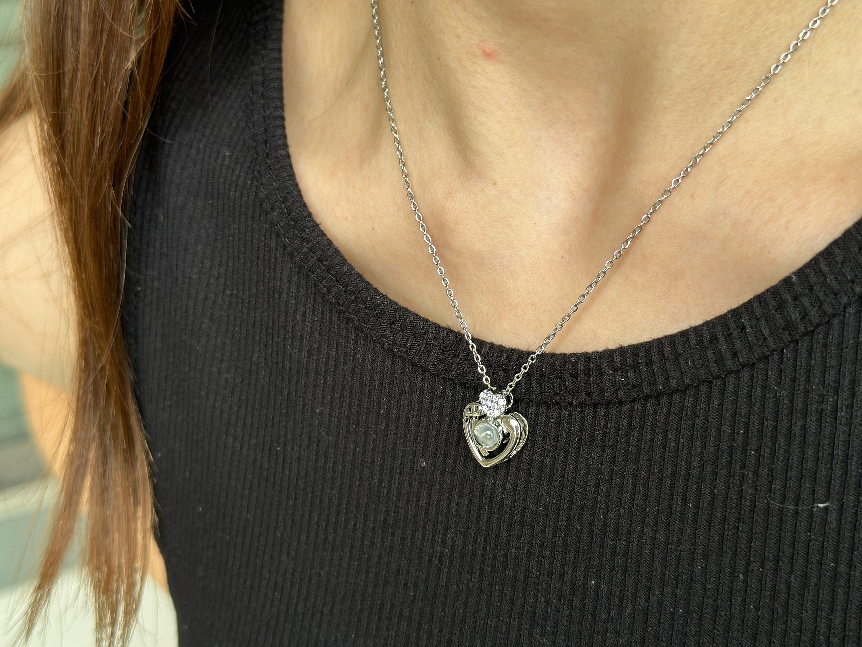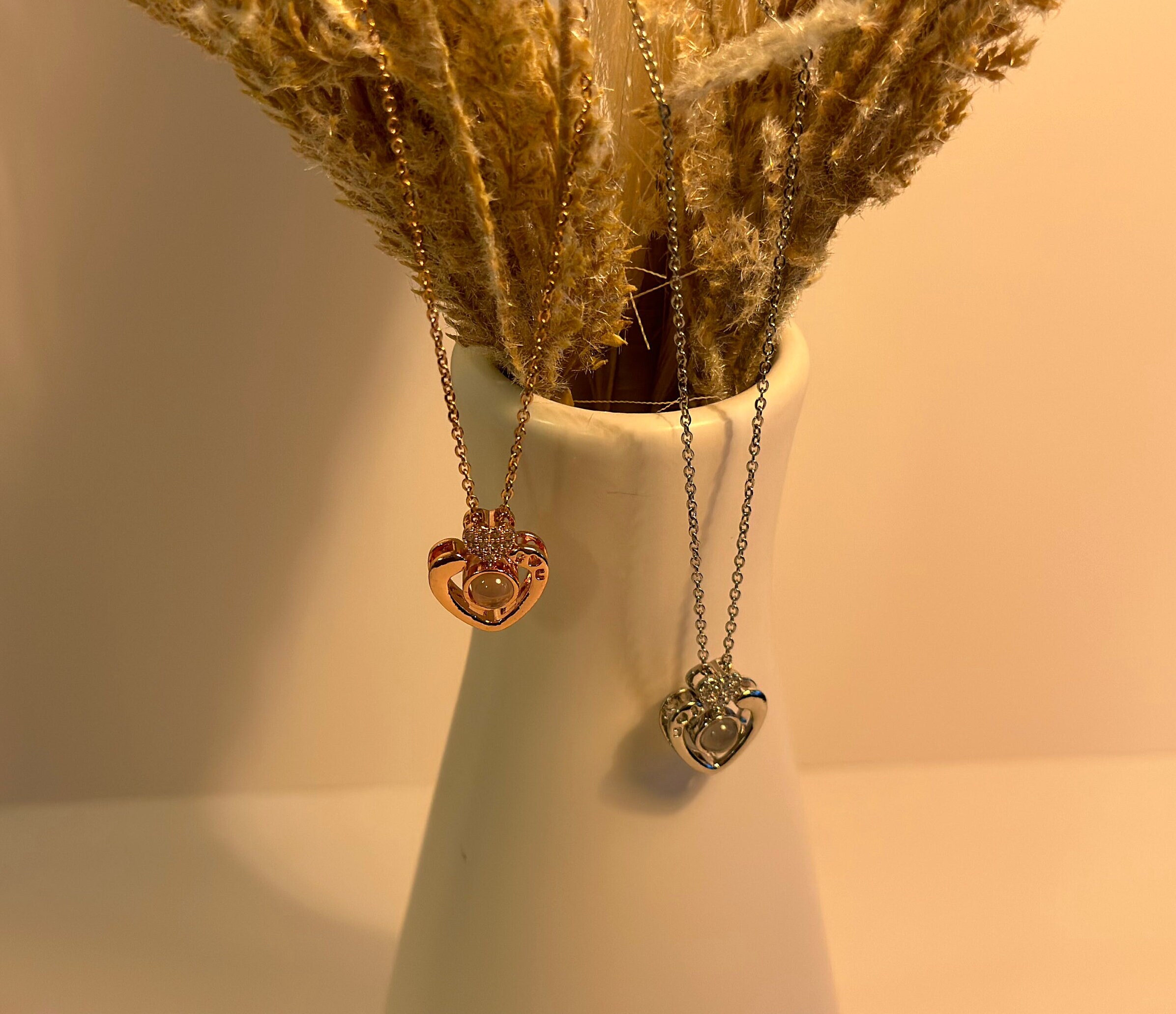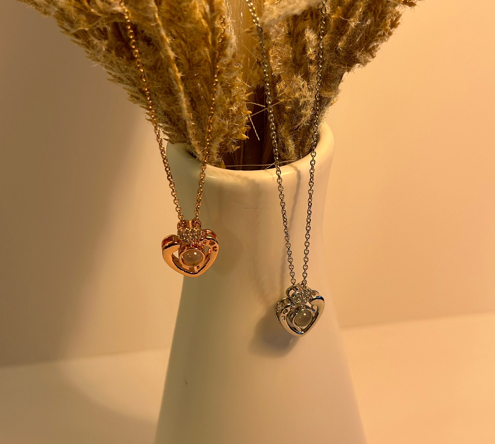 This 'I Love You Necklace' is the perfect way to show your special someone how much you care. Crafted from sterling silver and rose gold filled metal, this beautiful necklace features a heart-shaped pendant encrusted with sparkling diamonds. The perfect gift for any occasion, this stunning piece of jewelry will make her feel loved and cherished. Show her how much you care with this timeless and elegant necklace.