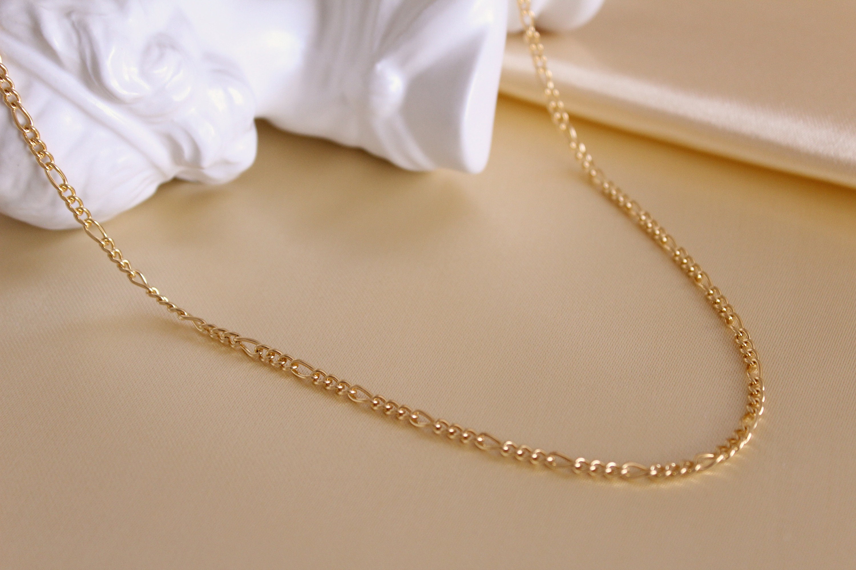 Crafted with precision and attention to detail, this necklace showcases the perfect fusion of classic design and modern sophistication. The Figaro chain, renowned for its distinctive pattern of interconnected links, creates a captivating visual appeal that instantly enhances any ensemble.