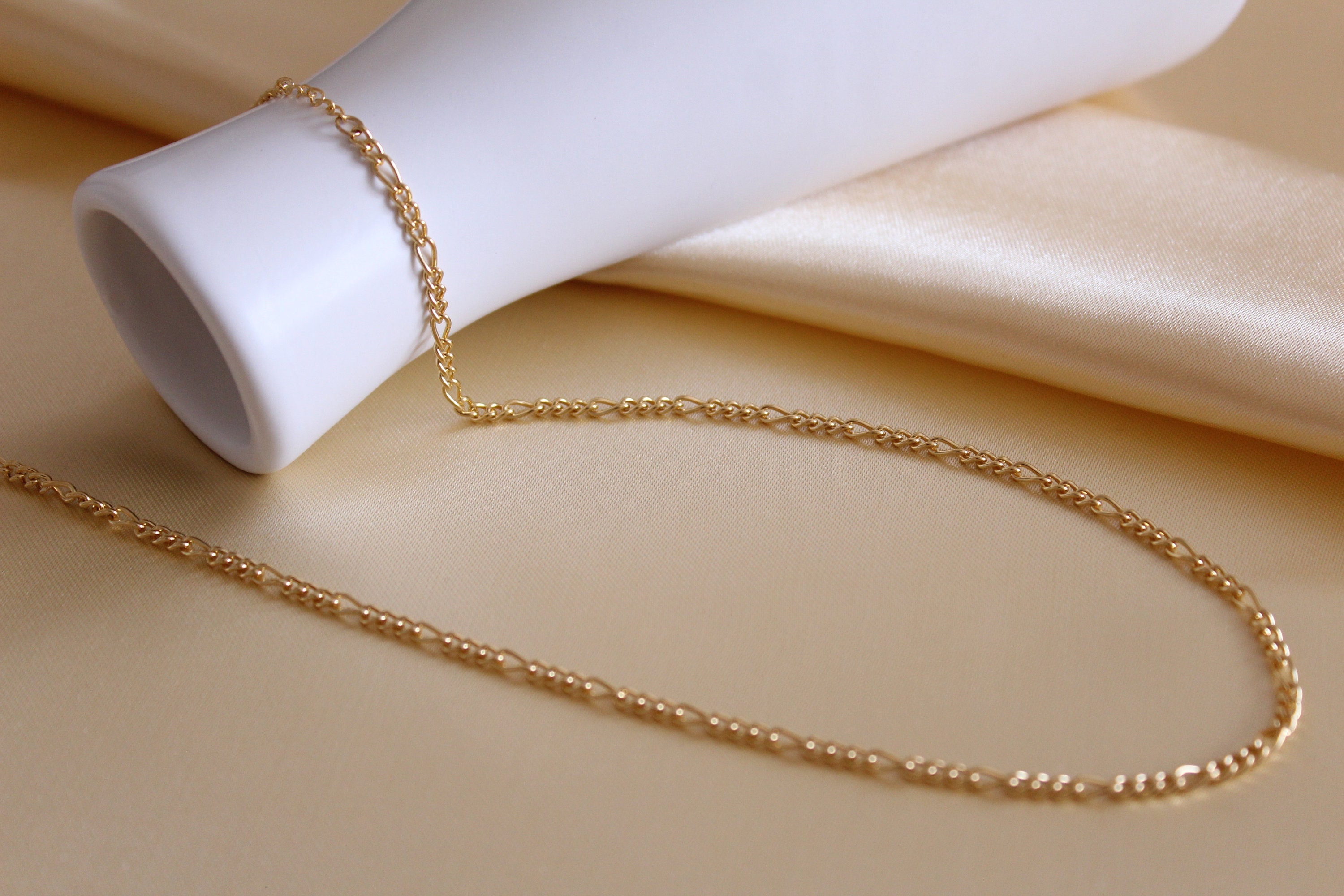 Introducing the exquisite Vogue 18K Gold Filled Stainless Steel Figaro Chain Necklace, a stunning accessory designed exclusively for women who appreciate timeless elegance and impeccable craftsmanship.