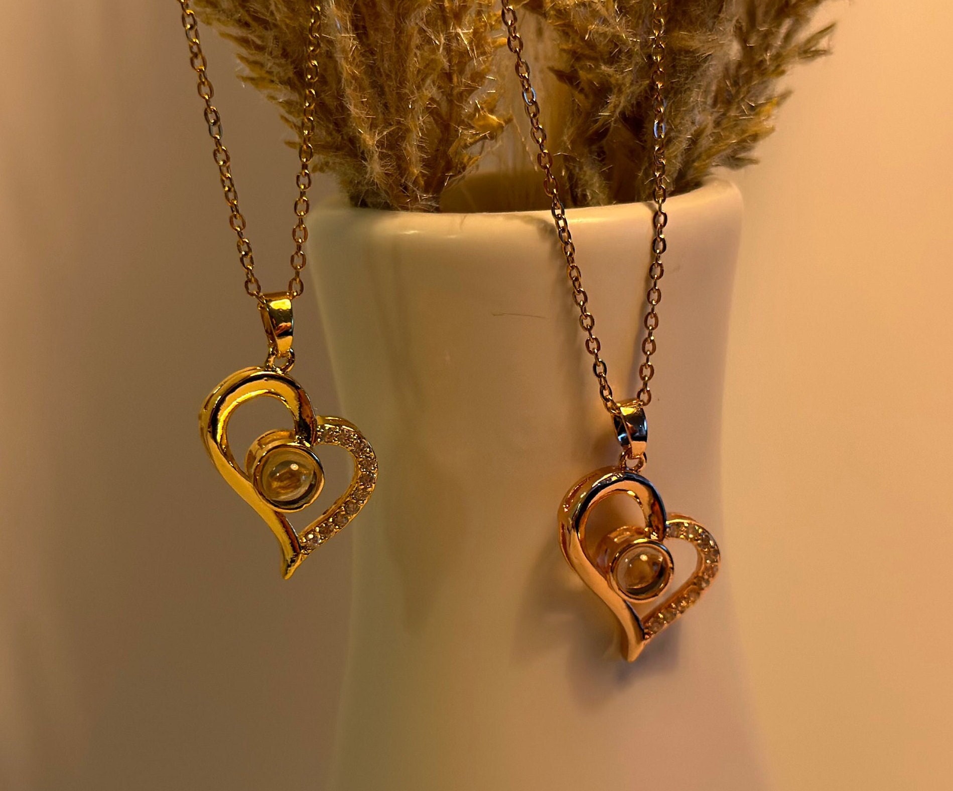 I Love You Necklace, Gold Color, Gold Filled, Heart Diamond Jewelry for Women, Elegant Heart Necklace, Gift for Her, Symbol of Love