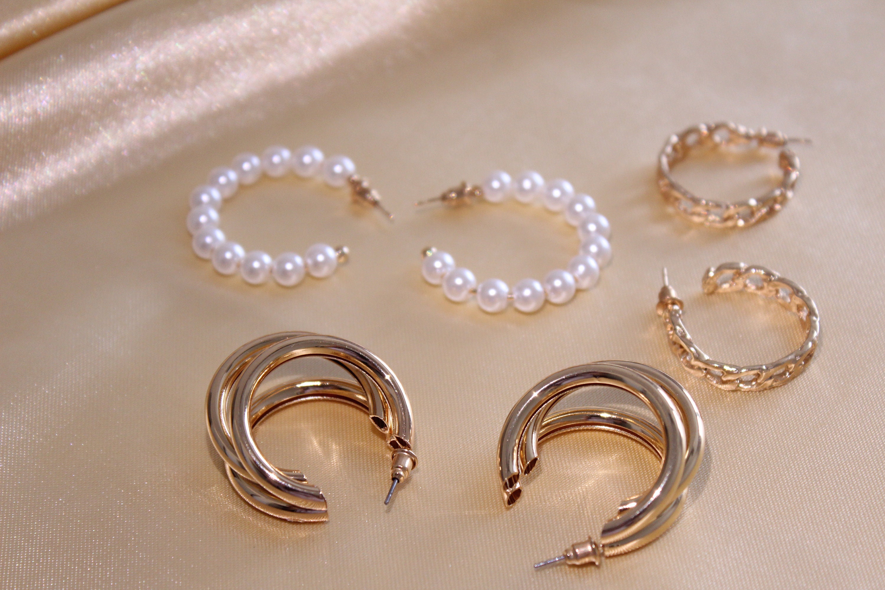 Elevate your style with our stunning Gold Metal Earrings Set, a fashionable embodiment of the 2023 jewelry trends for women. This set of earrings redefines elegance with its chic geometric design and delicate pearl accents, making it the perfect addition to your accessory collection.