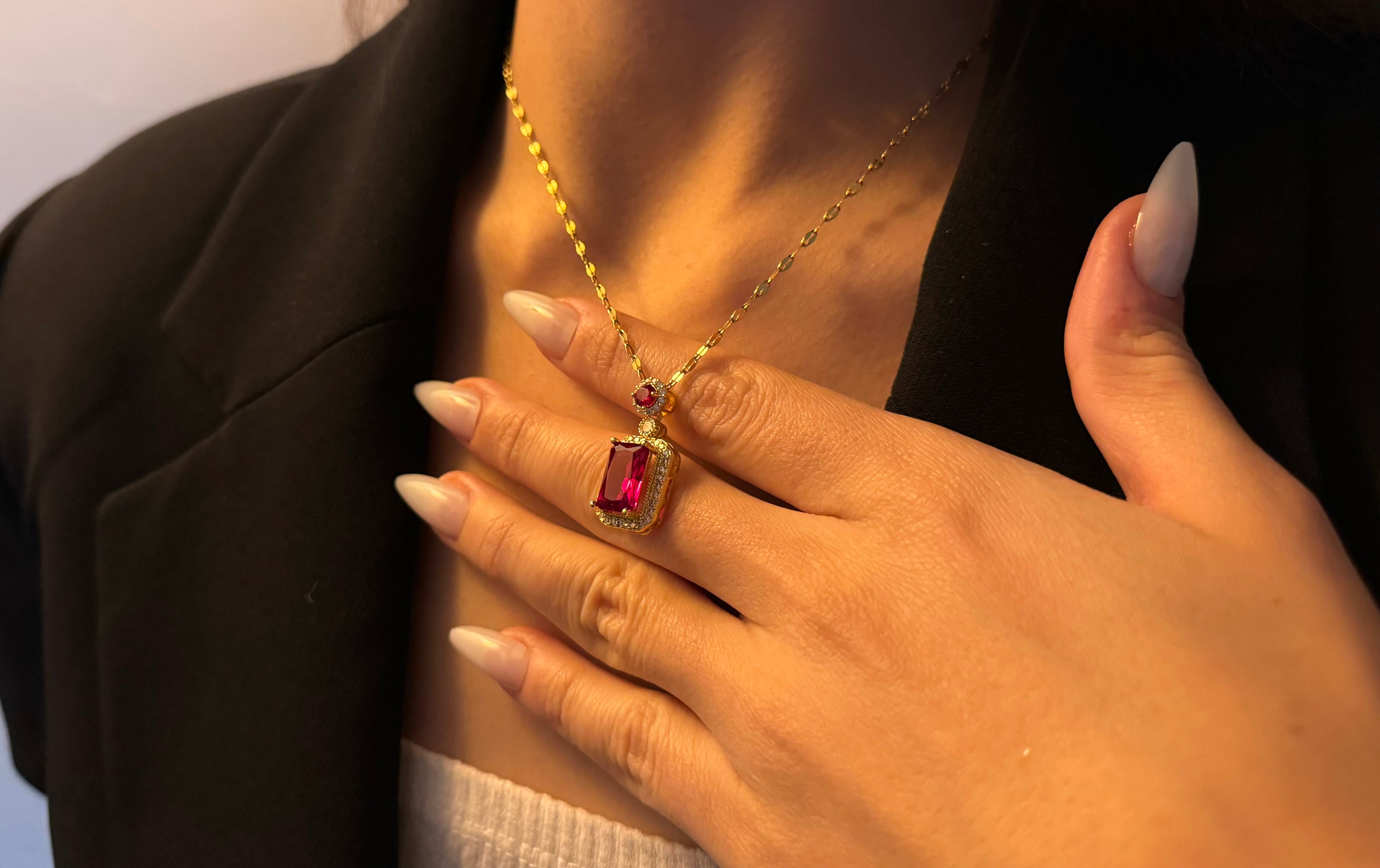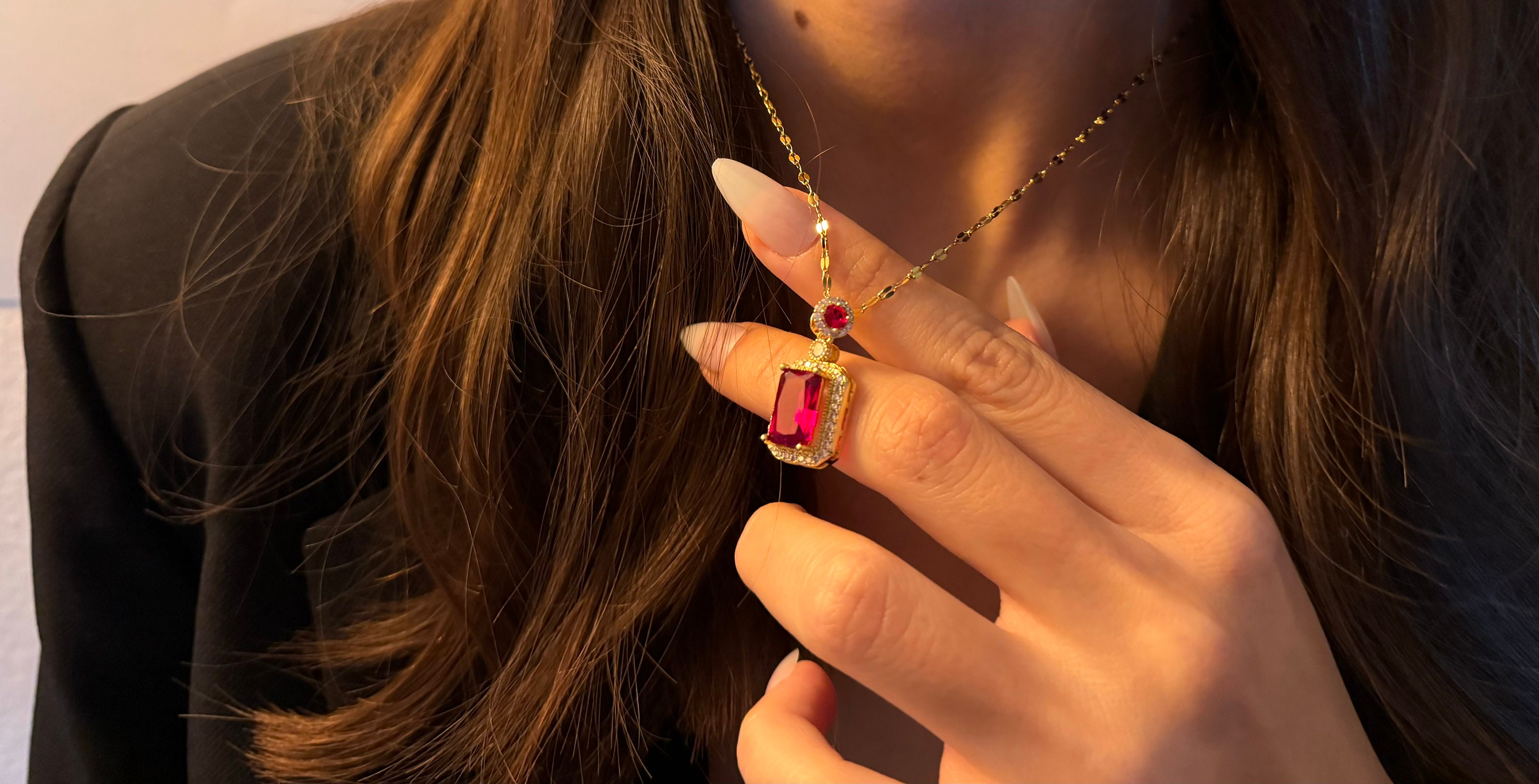 Elevate your style and celebrate love with our Luxury Red Zircon Necklace Jewelry. Whether you're a bride seeking the perfect accessory for your wedding day or someone looking for a thoughtful engagement gift, this handcrafted necklace promises to enchant and leave a lasting impression. It's a testament to love and timeless beauty, ensuring you shine on your special day and every day thereafter.