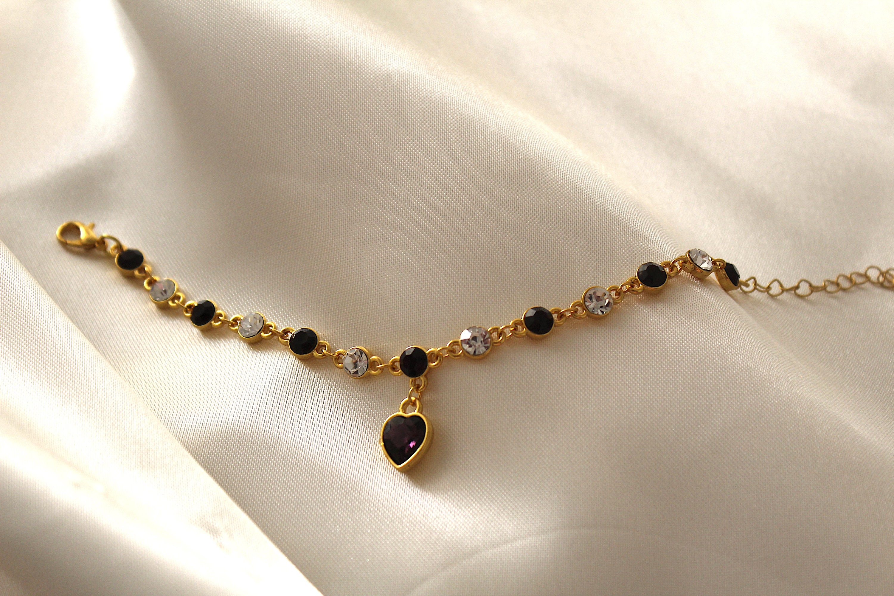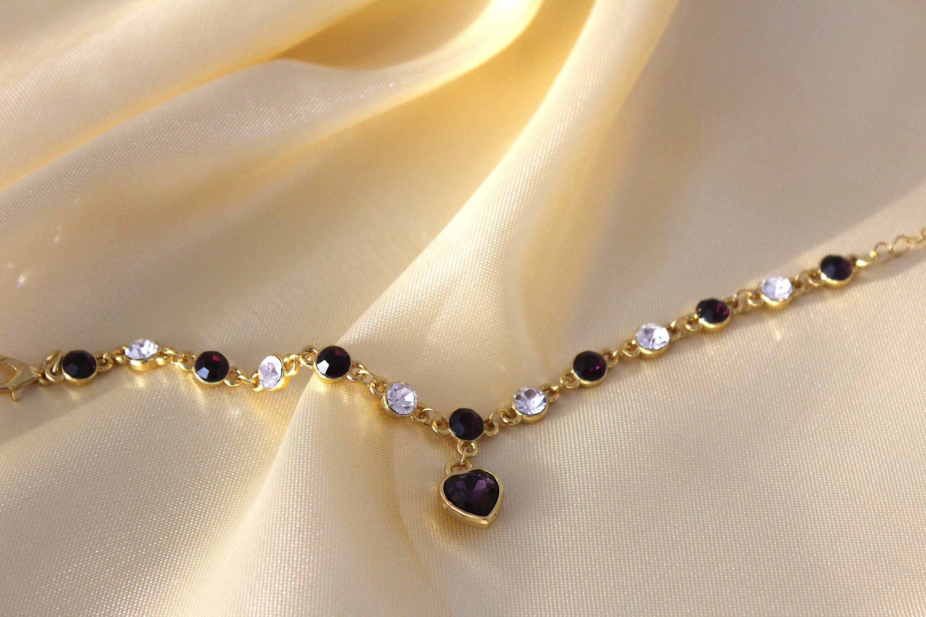 Gold Purple Heart Bracelets, Women Purple Sapphire, Tanzanite Chain Bracelet, Trendy Gift Fine Jewelry, Gift for Her, Anniversary Gift
