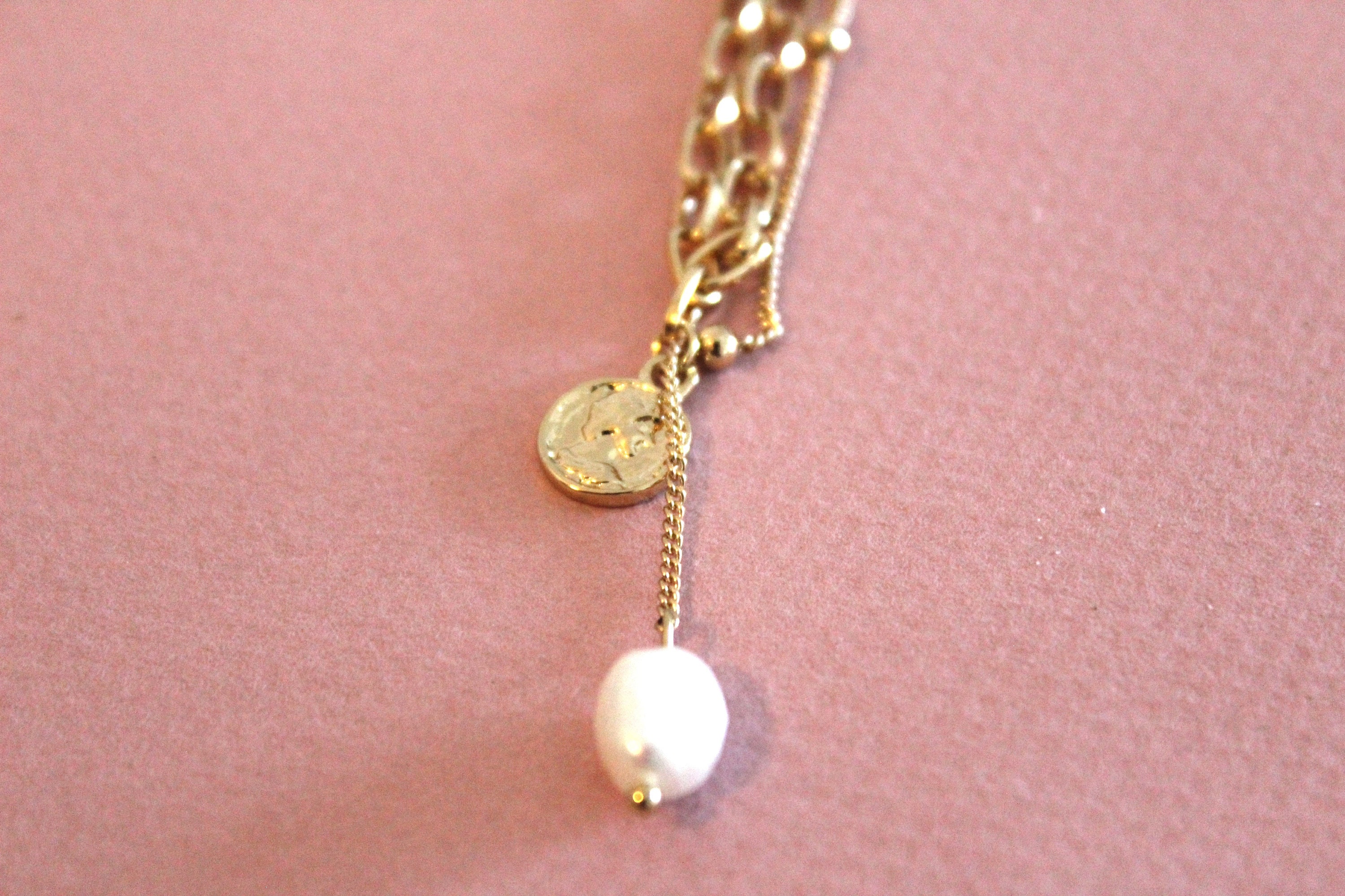 The necklace features a gold finish, adding a touch of warmth and elegance to the overall design.
