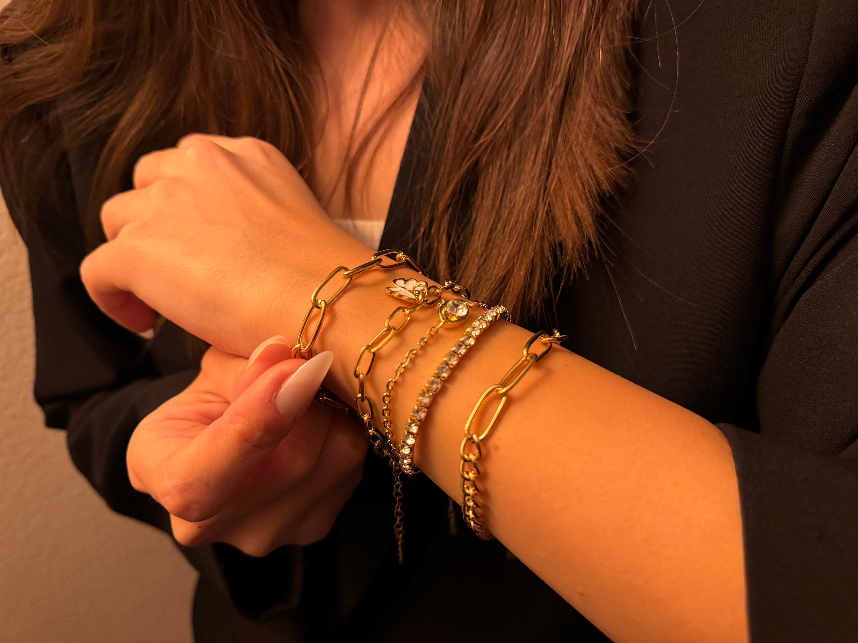Elevate her style and show your appreciation with our Gold Bracelet Set. Whether she prefers a classic and elegant look, a contemporary design, or a whimsical butterfly charm, this five-piece collection offers versatility, quality, and style. It's a perfect addition to her jewelry collection, allowing her to express her individuality on any occasion.