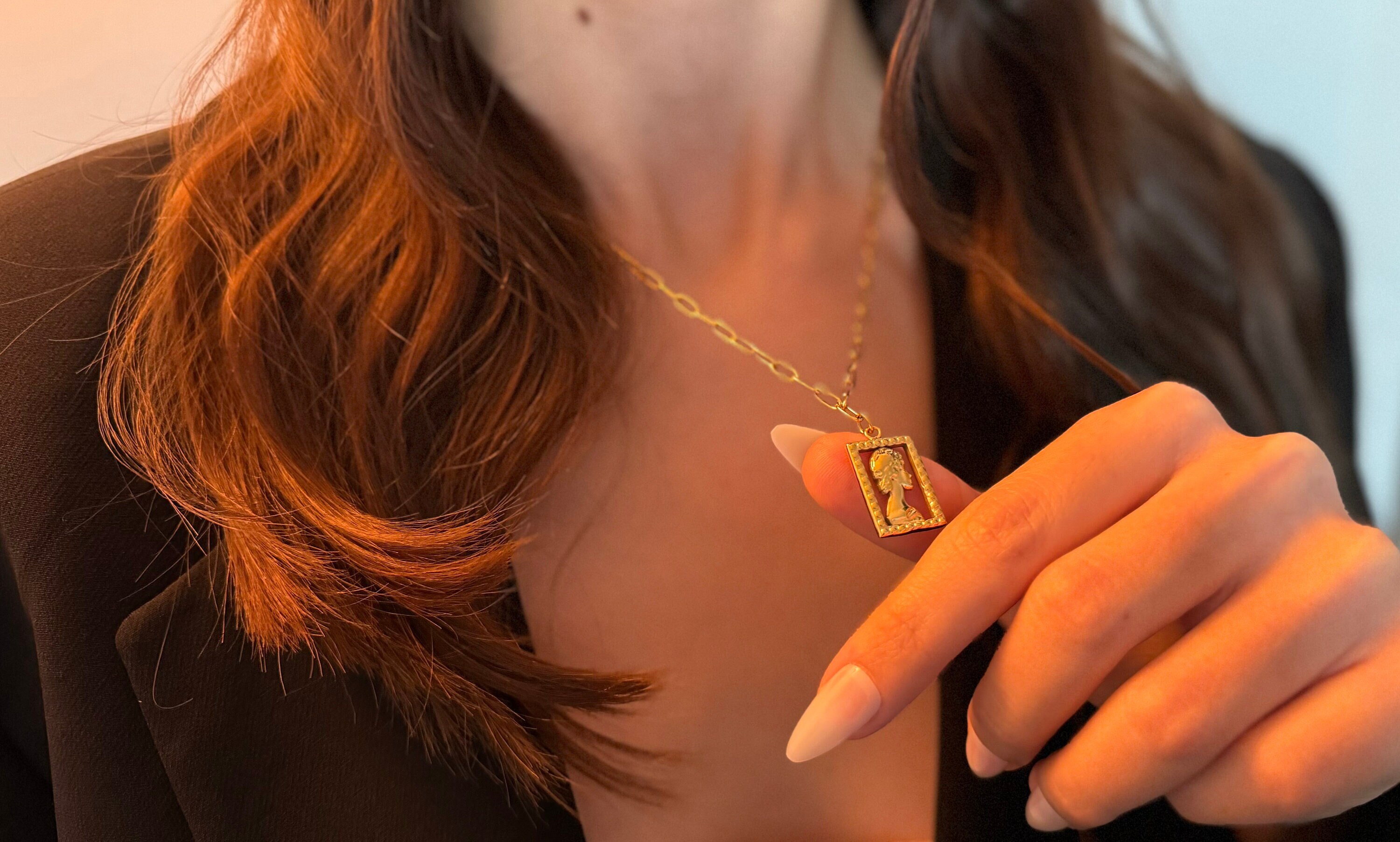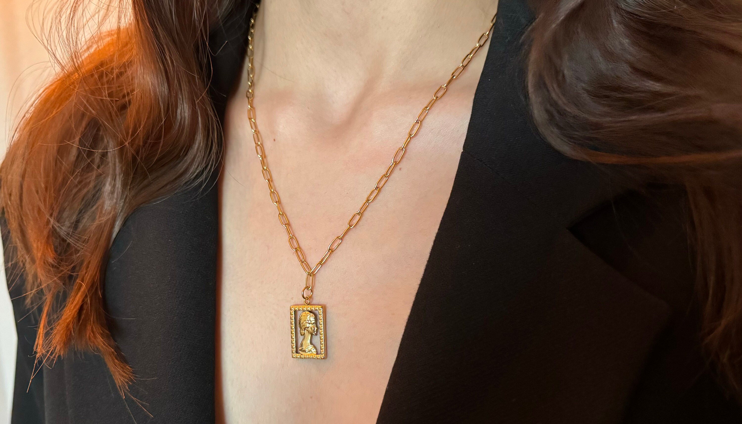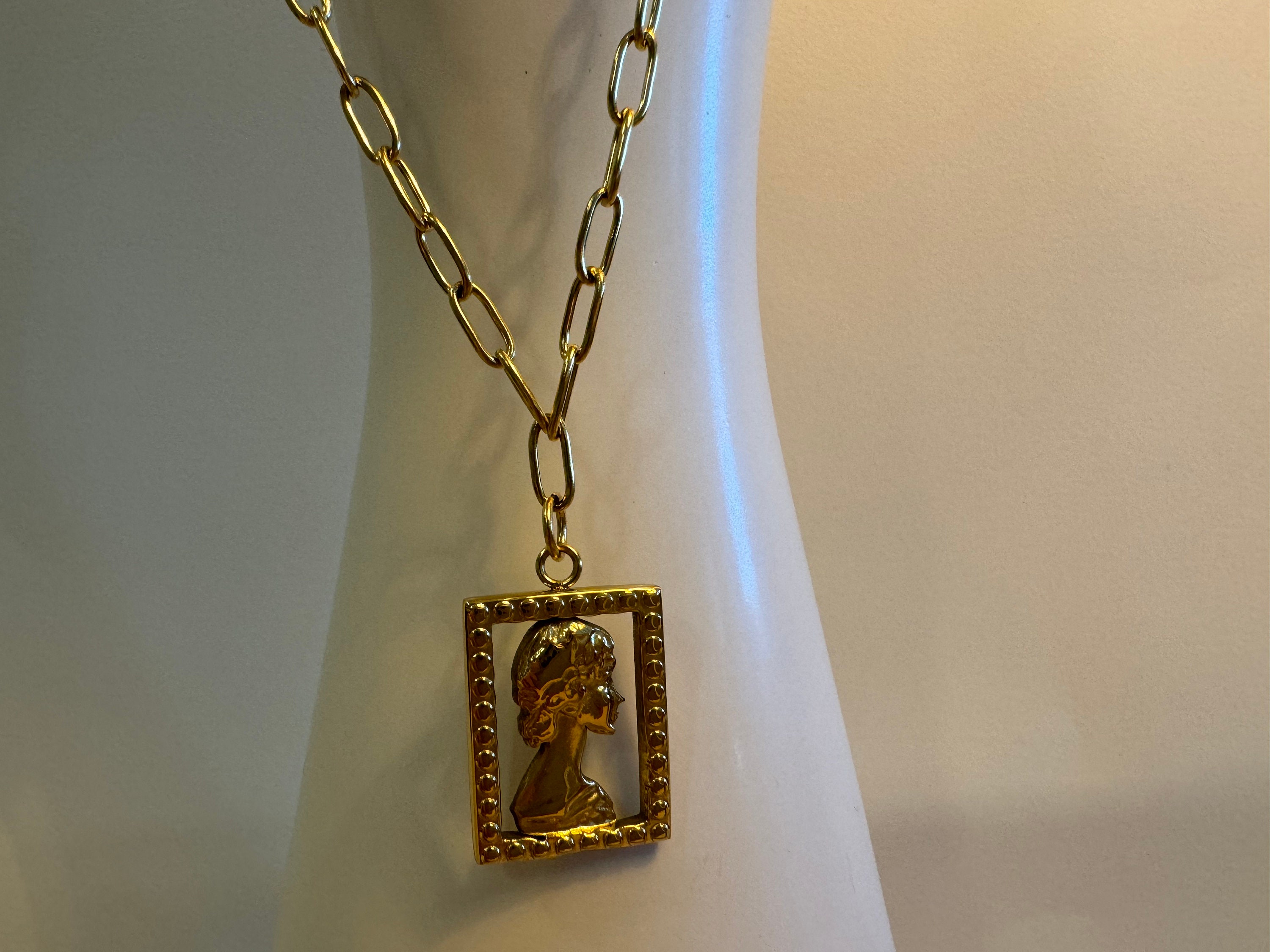 Elevate your style and add a touch of vintage charm with our Vintage Goddess Pattern Necklace. The intricate design and 18K gold-filled finish make it a timeless accessory that exudes grace and beauty. Whether it's worn as a statement piece or to complement a specific outfit, this necklace is a testament to elegance and sophistication, ensuring you shine in any setting.