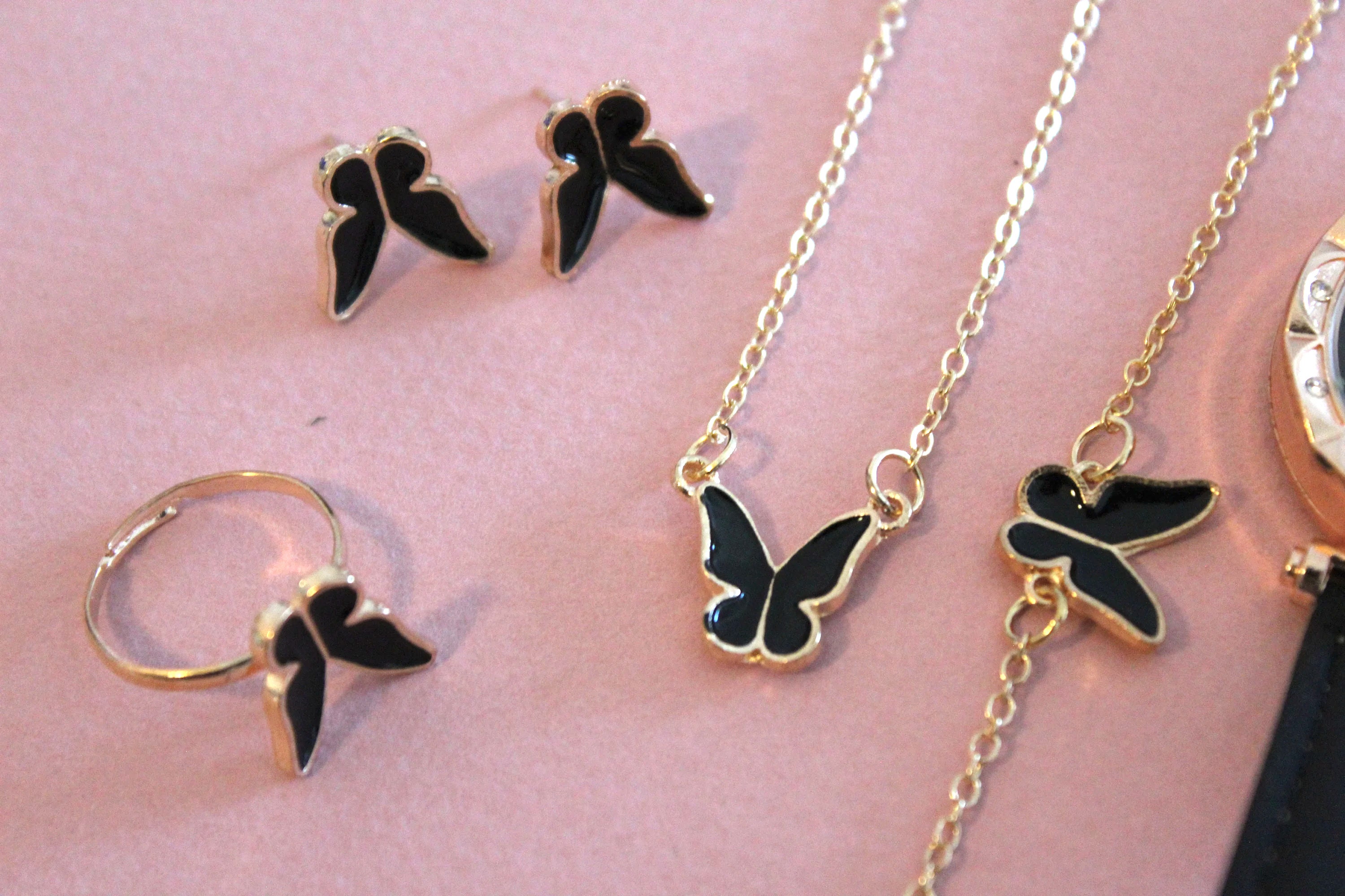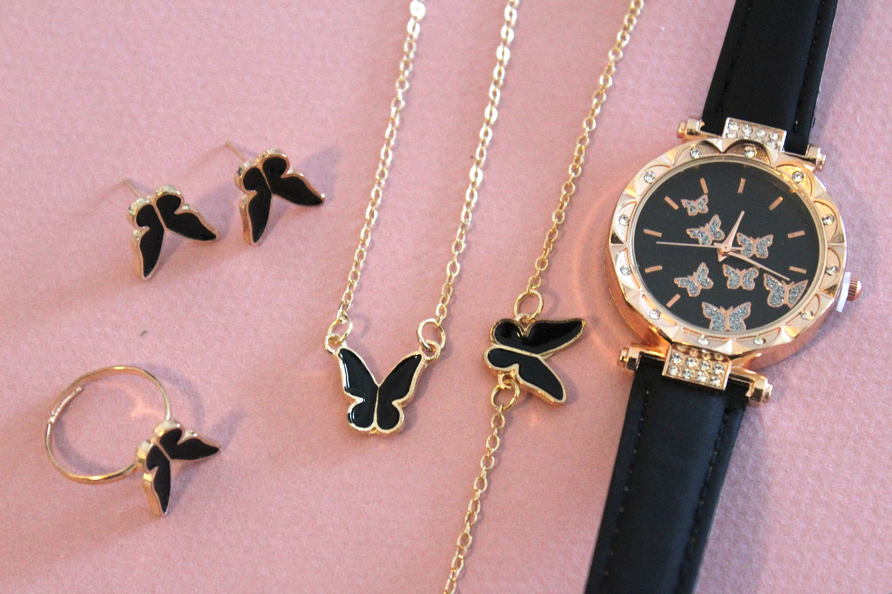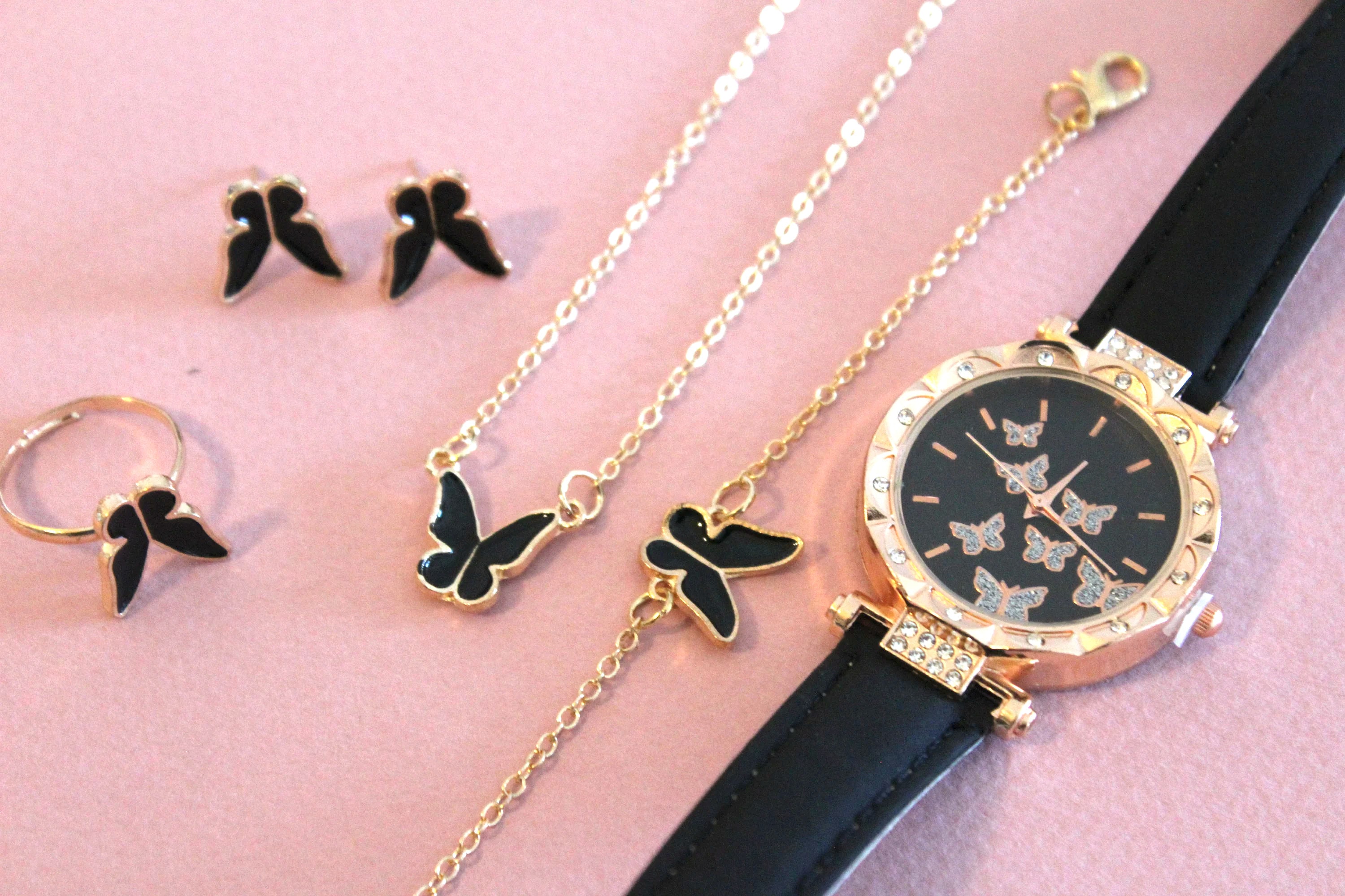 New Jewelry Set 6pcs, Leather Watch, Earrings, Ring (Resizable), Bracelet and Necklace Set, Ladies Watch Set, Handcrafted Women Watch Set