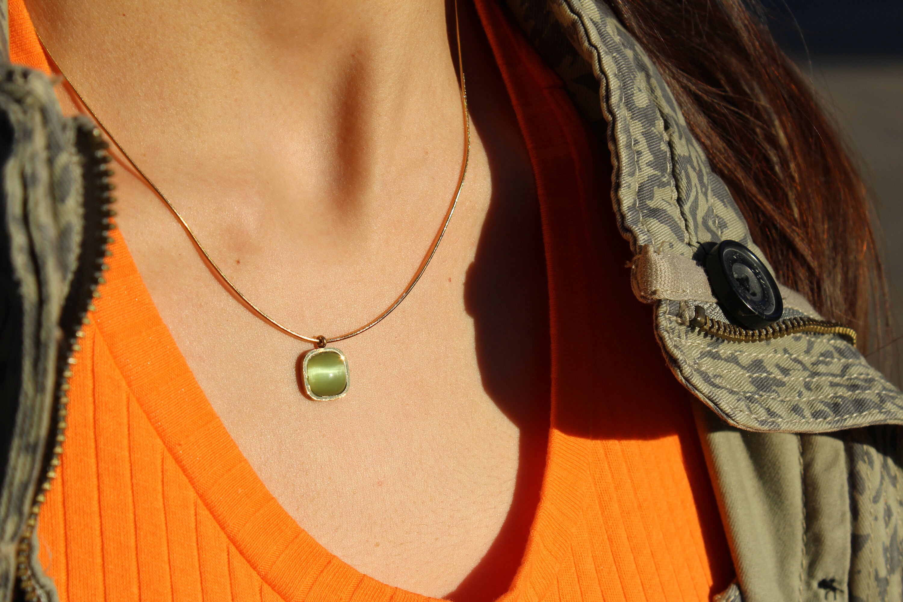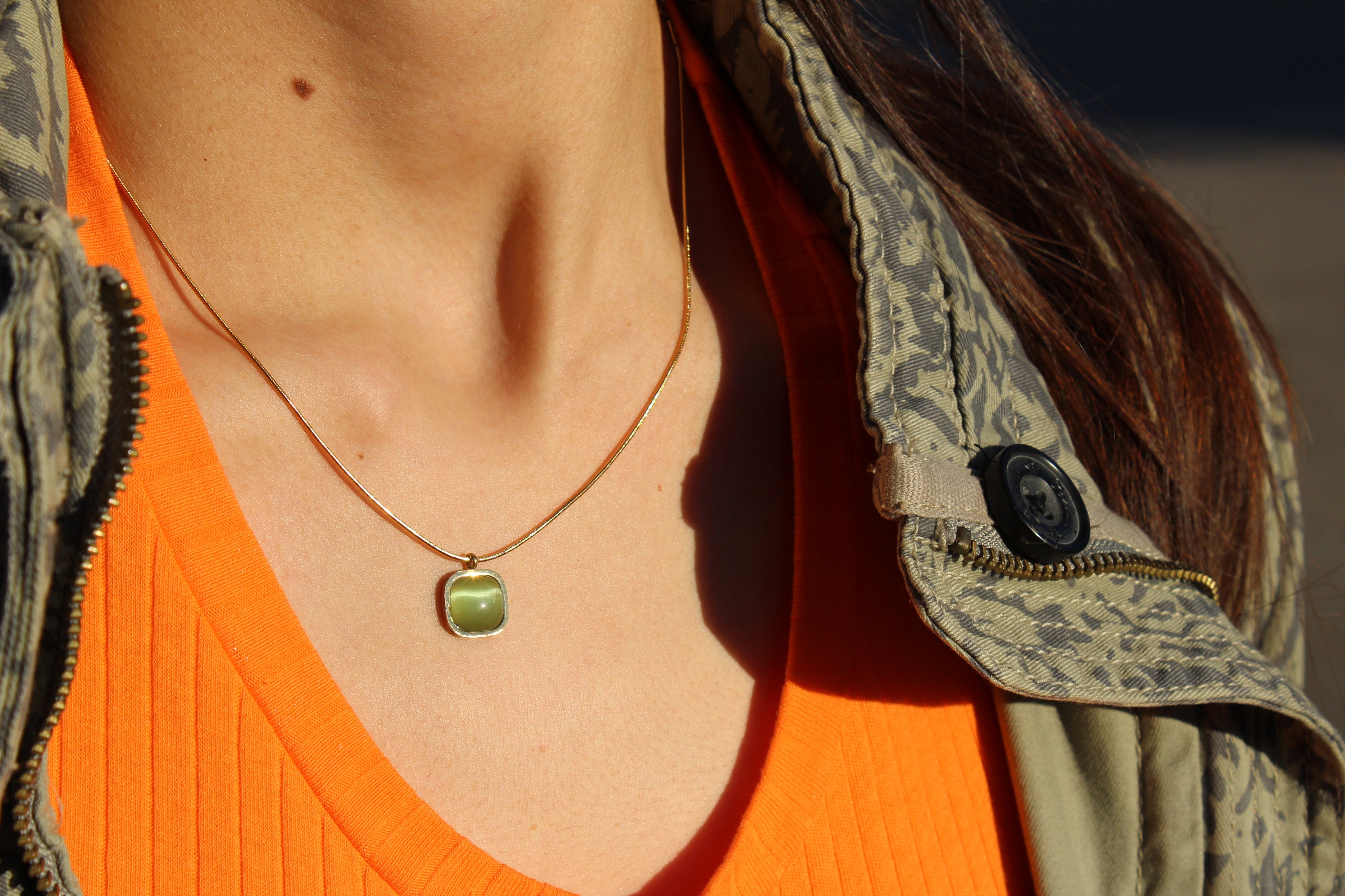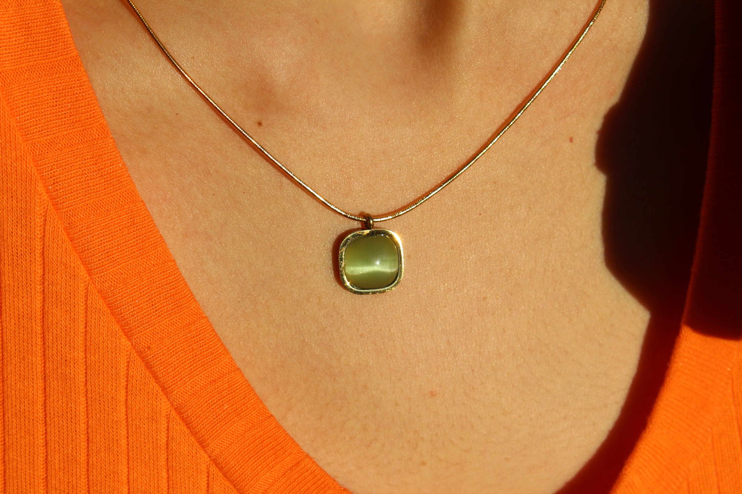 Women Square Green Pendant Necklace, Green Stone Necklace, 18K Gold Filled Women Necklace, Special Wearing Necklace, Gift for Her