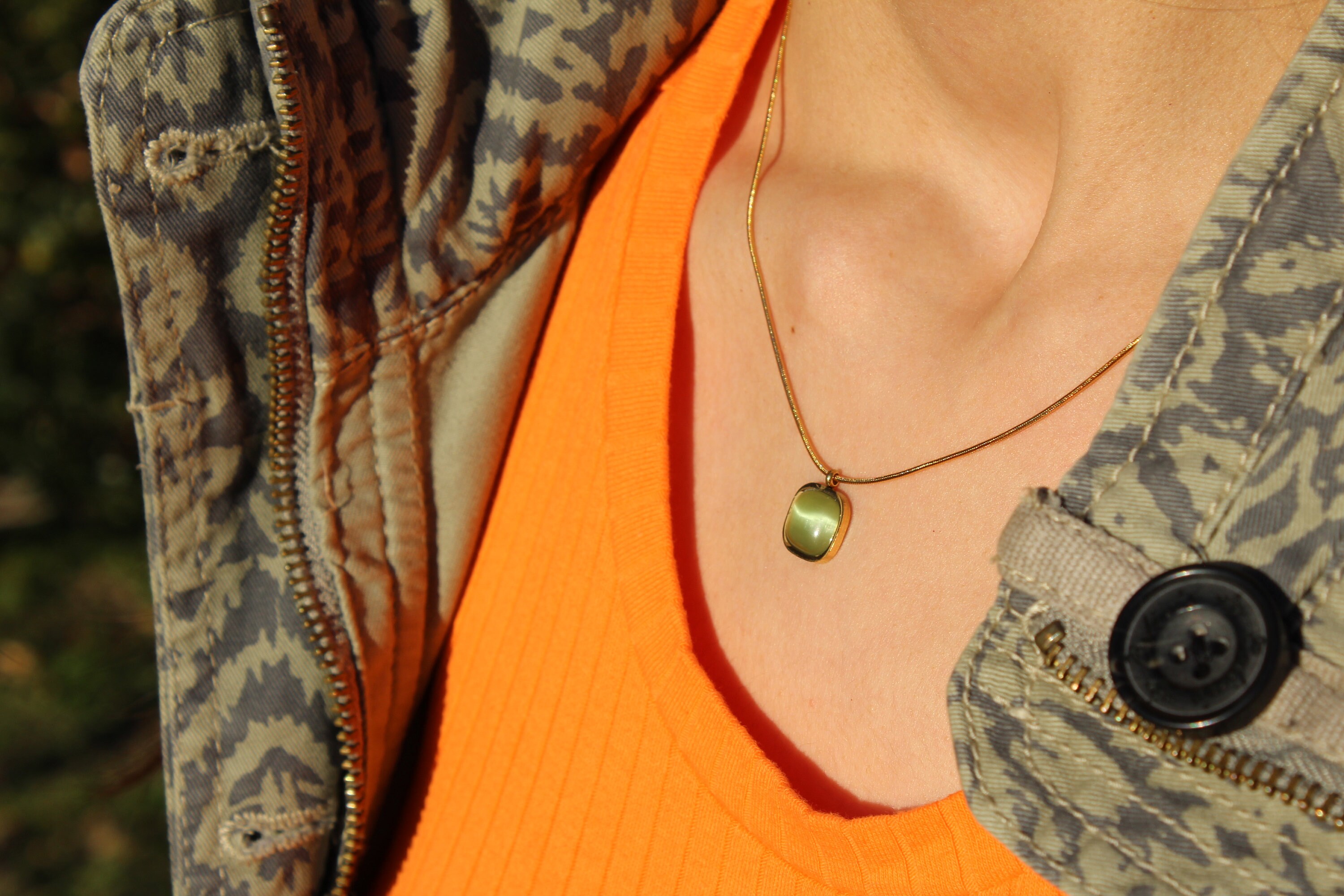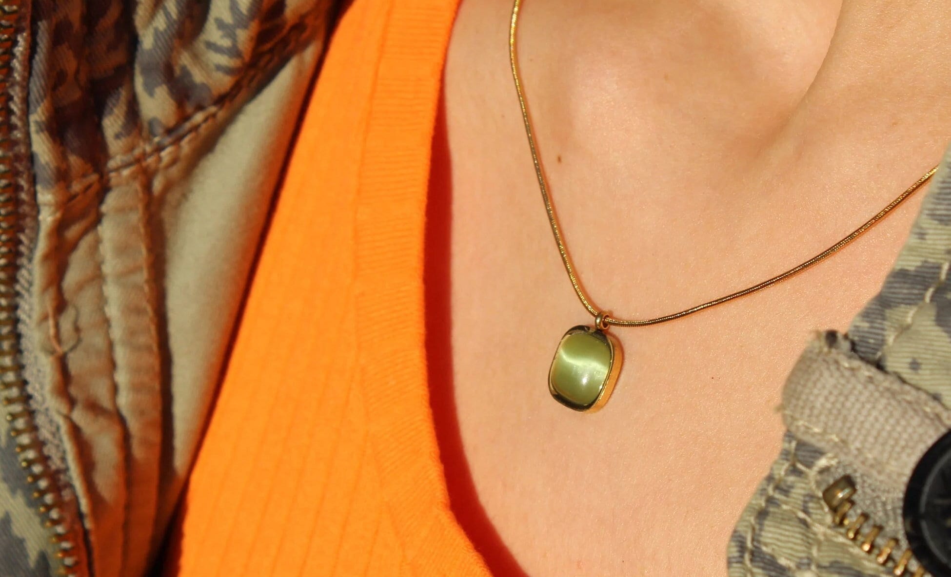 Adorned with a captivating green stone, this necklace exudes natural beauty and adds a vibrant pop of color.