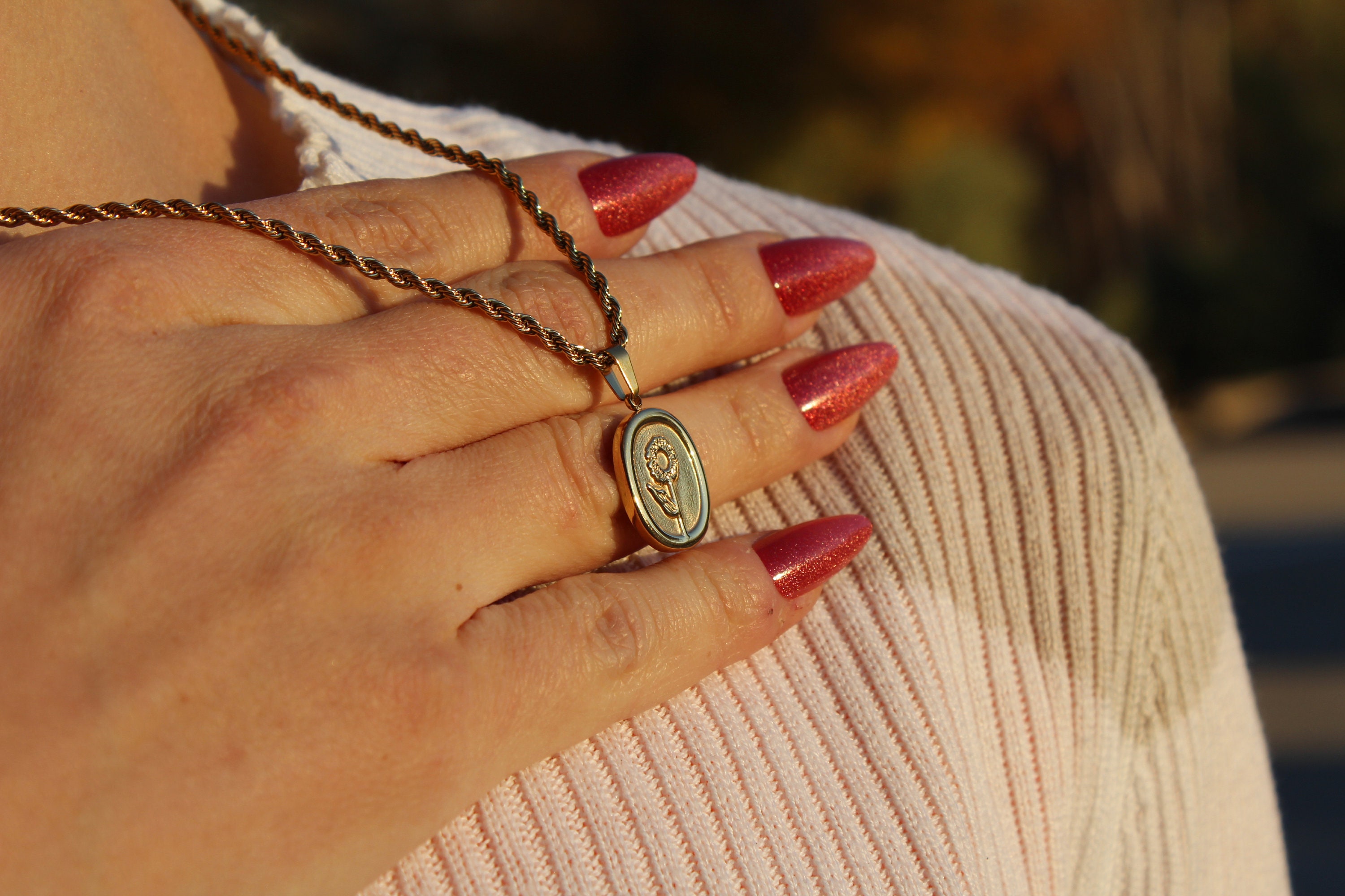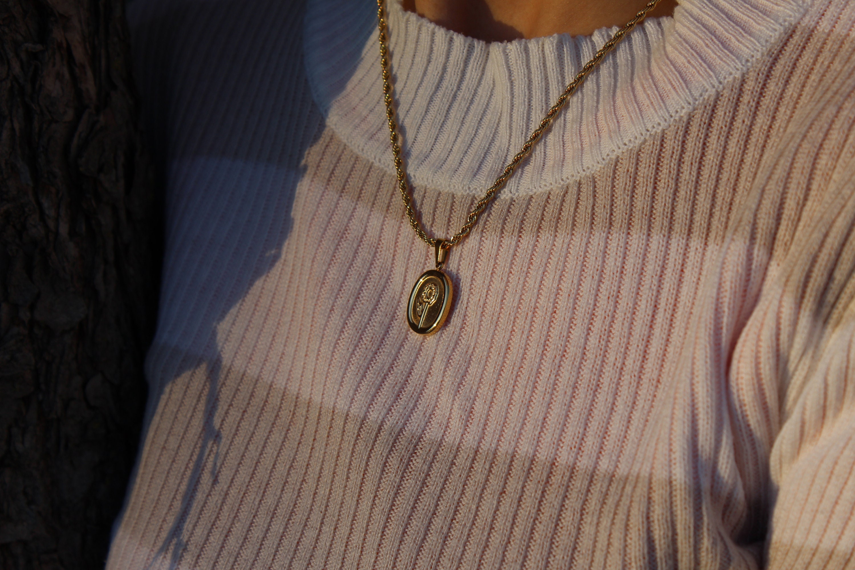 Introducing our Flower Oval Pendant Necklace, a captivating and feminine piece that seamlessly blends the timeless beauty of a flower with the elegance of an oval pendant. This women's gold pendant necklace is meticulously crafted in exquisite 18K gold filled brilliance, making it a stunning accessory for special occasions or a thoughtful gift for her. Embrace the enchantment of nature and enduring elegance with this versatile and uniquely designed necklace.