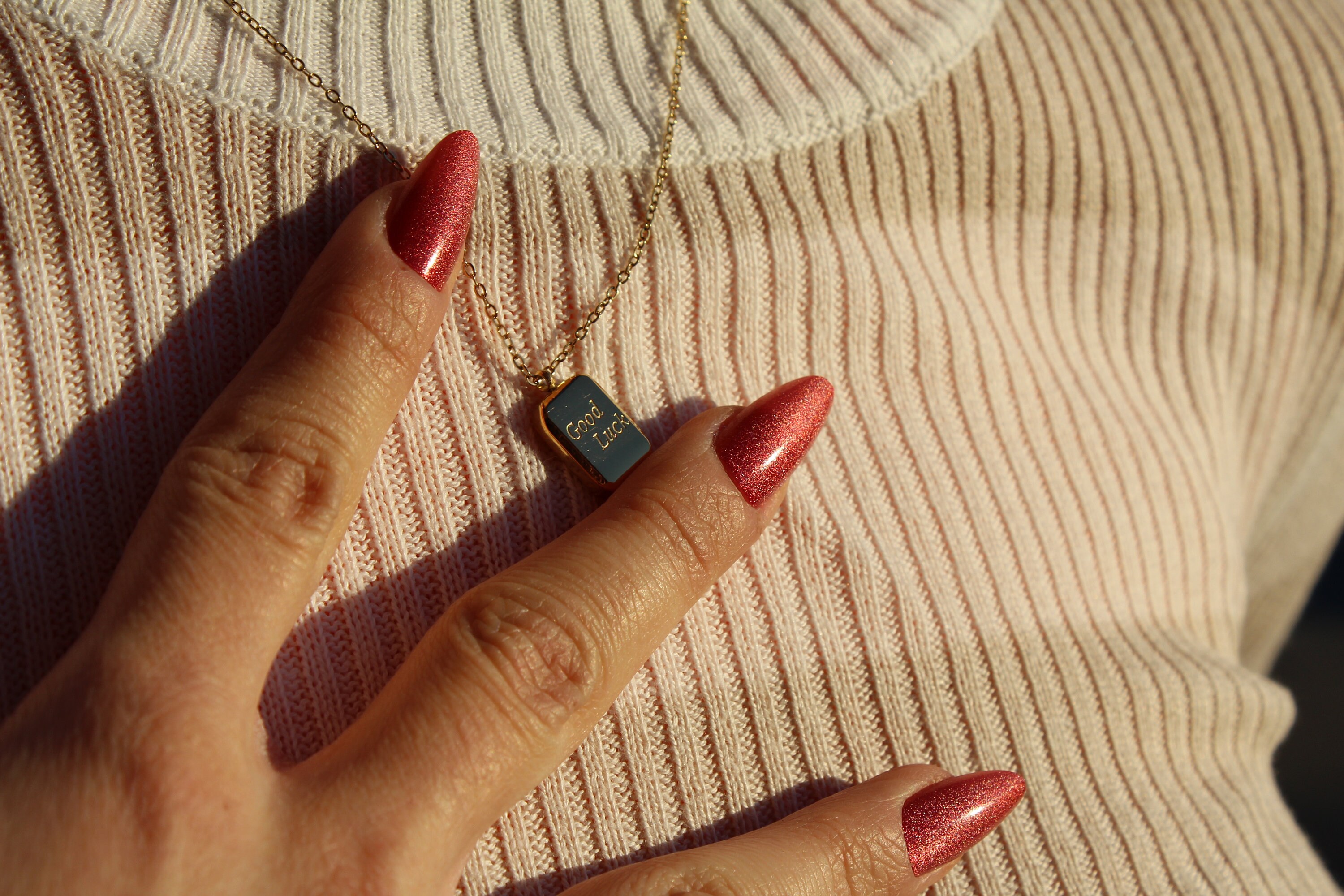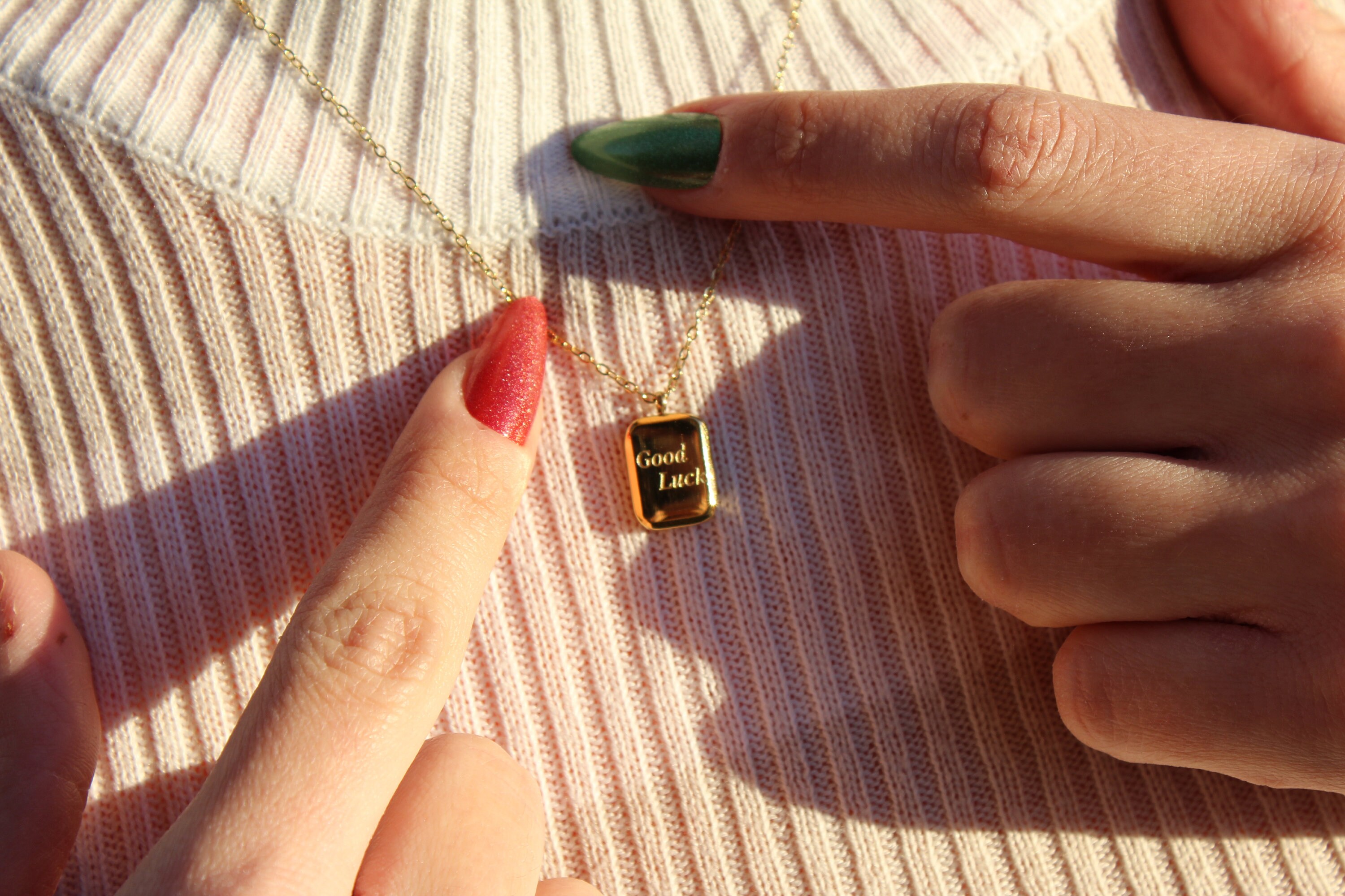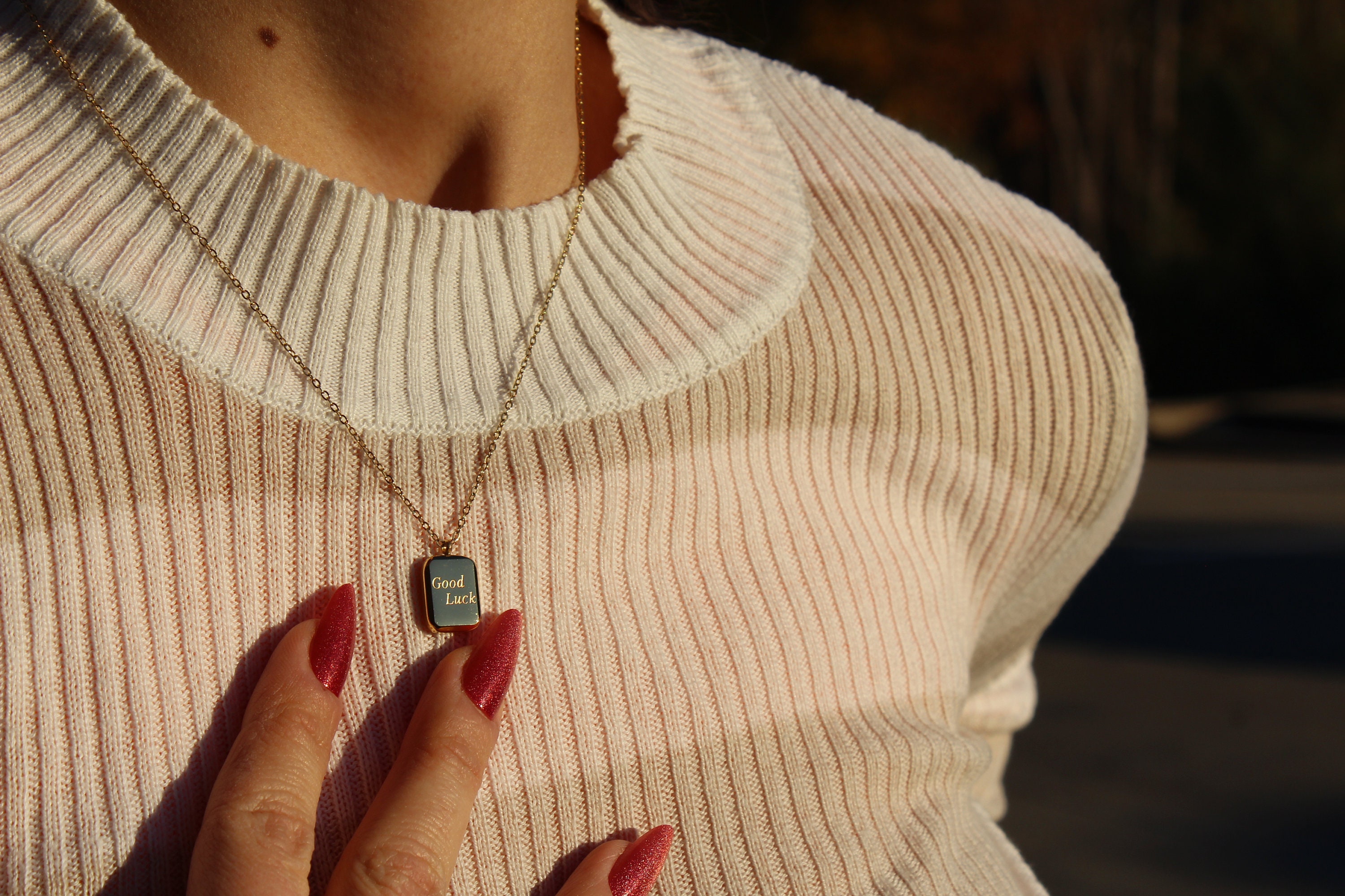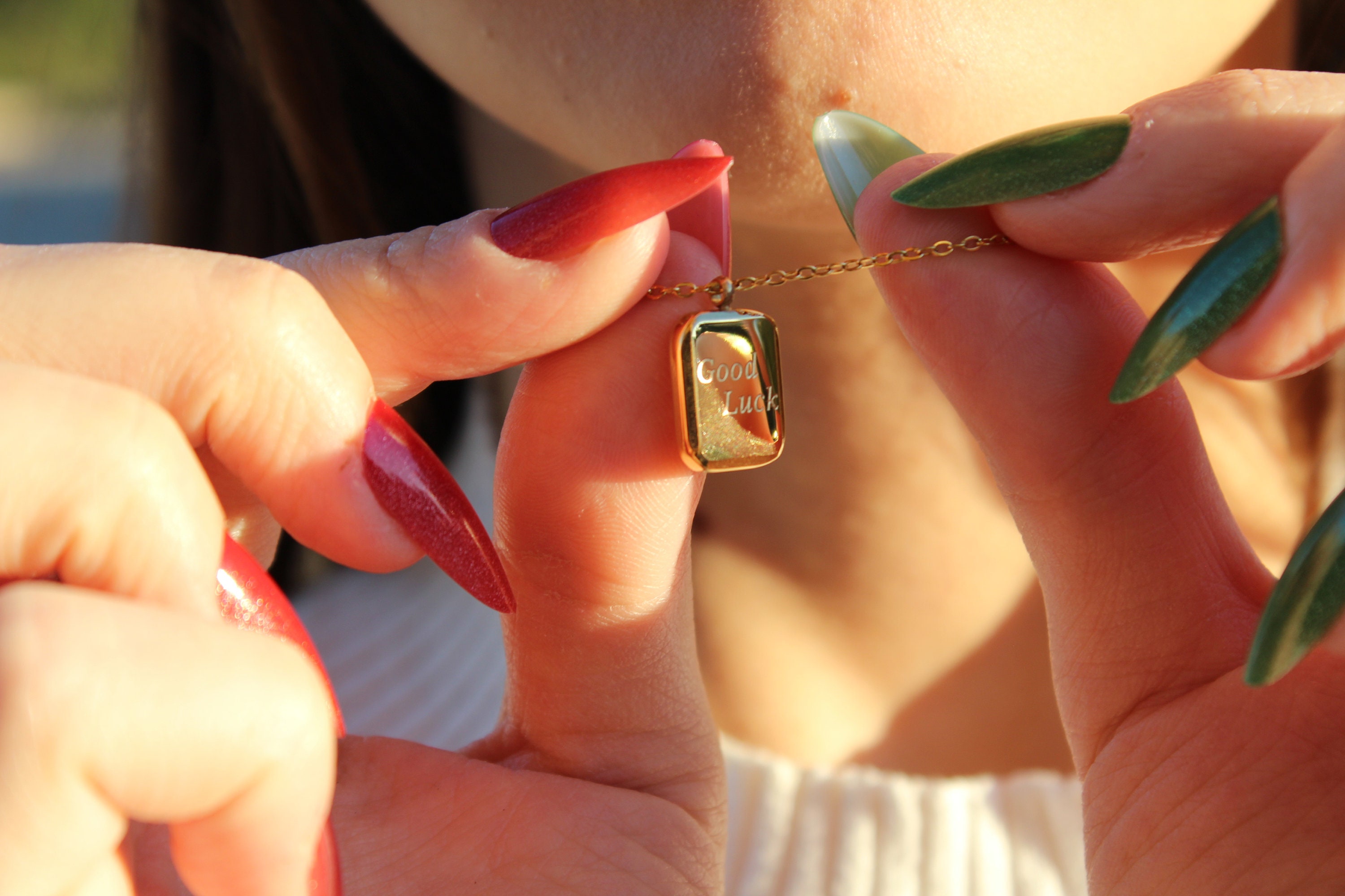 The Good Luck Square Pendant Necklace serves as a thoughtful and stylish gift for her, perfect for birthdays, anniversaries, or any special occasion.