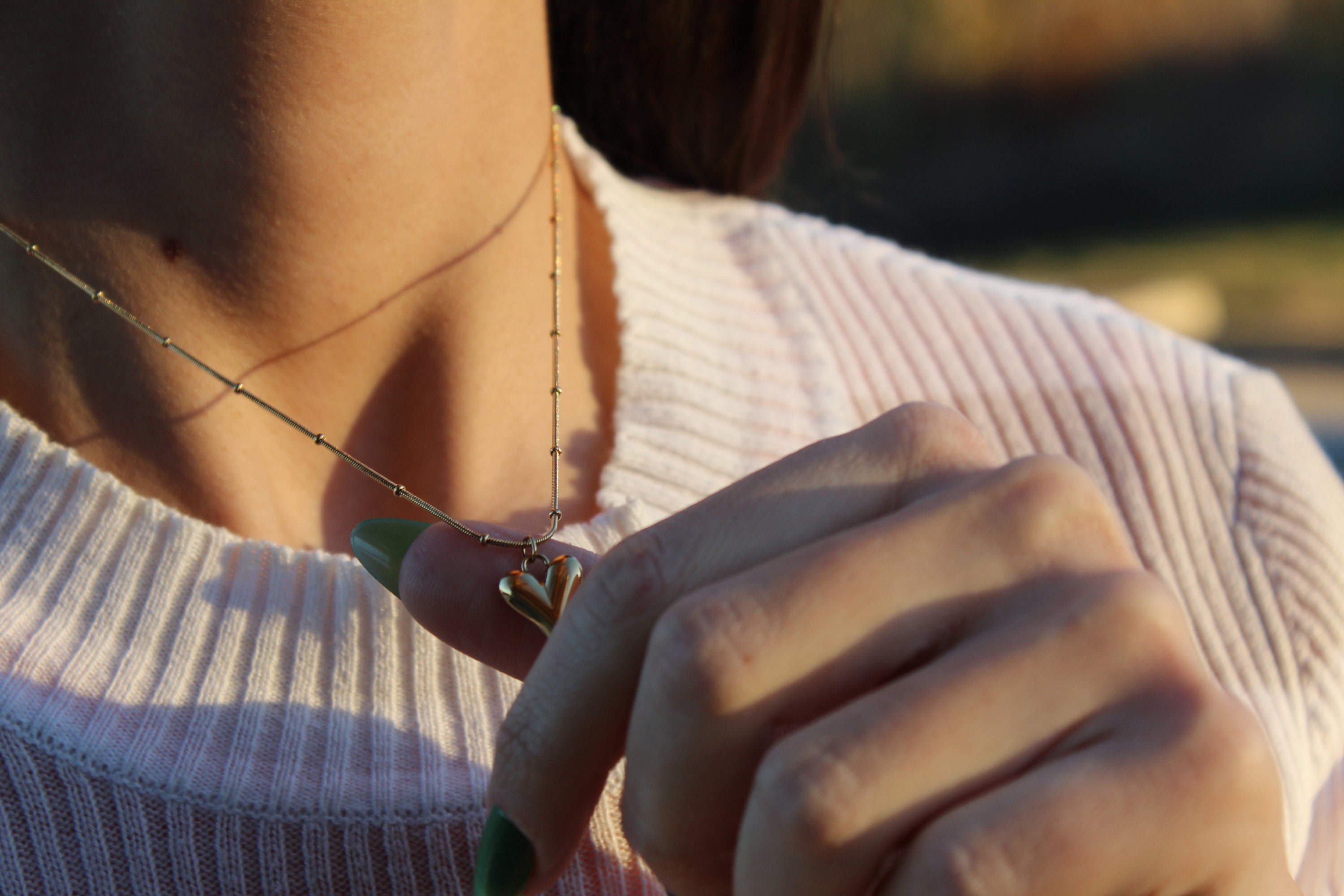 The necklace features a beautifully crafted heart pendant, symbolizing love, warmth, and connection.