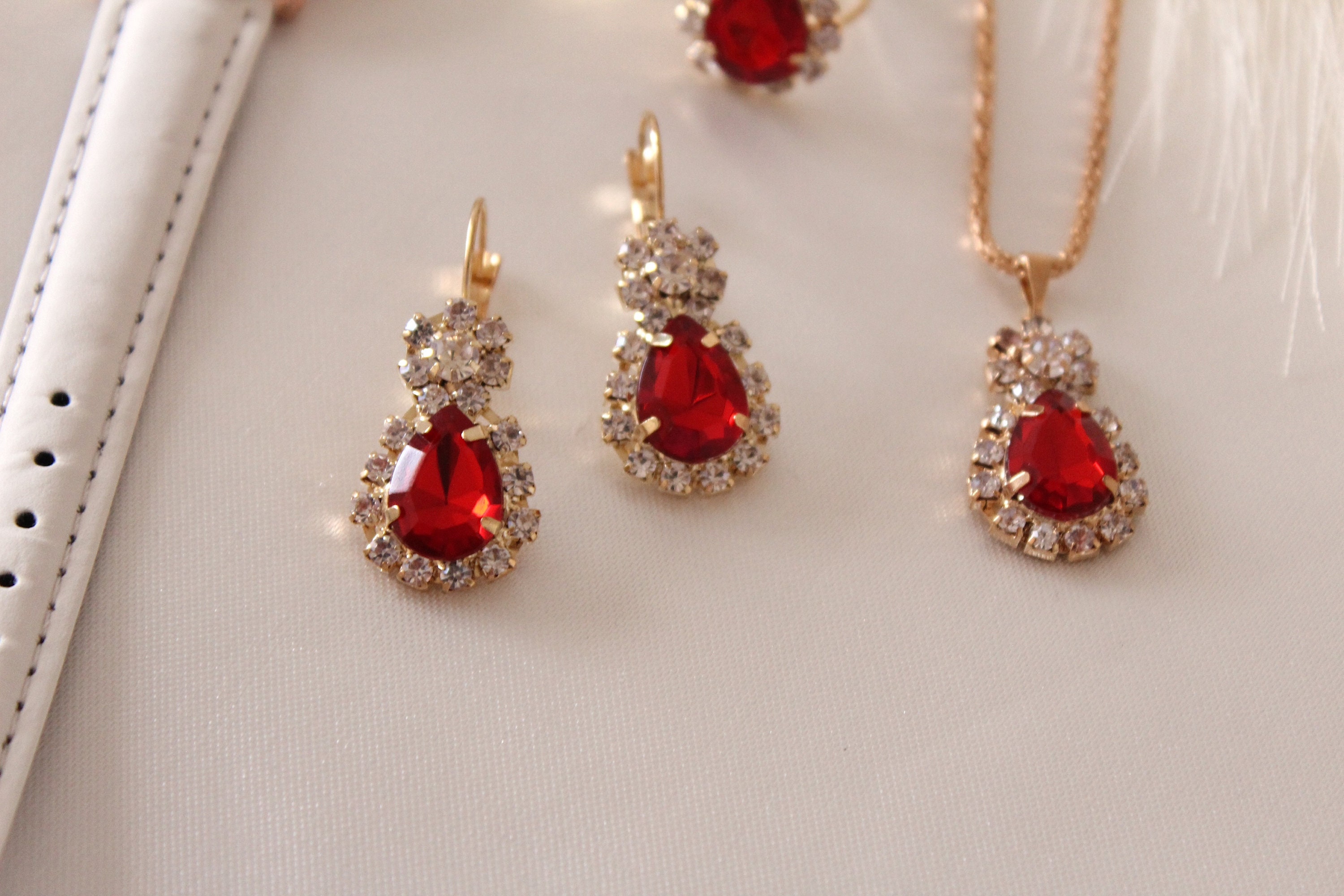 The necklace completes the set, featuring red diamonds that echo the theme of luxury and style.