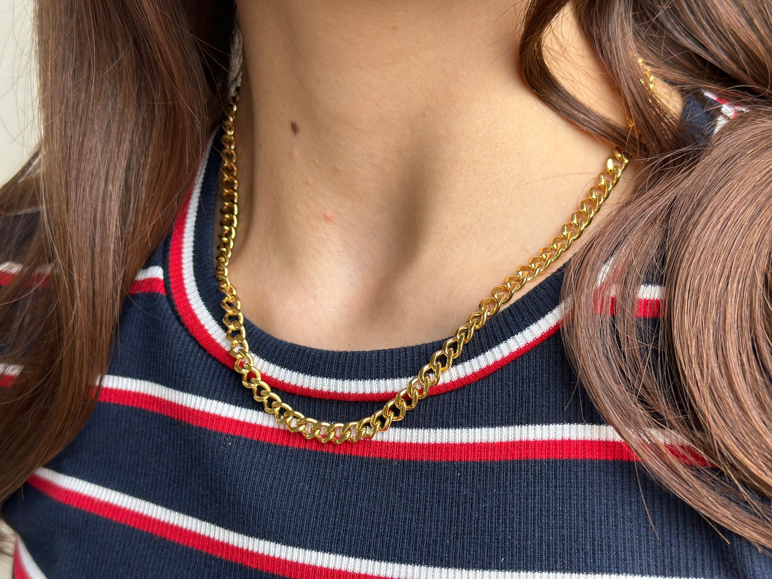Women's Glamorous 18K Gold, Stainless Steel, Thick Cuban Chain Necklace, Women's Jewelry, 18K Gold Filled Jewelry, Stainless Steel Chain