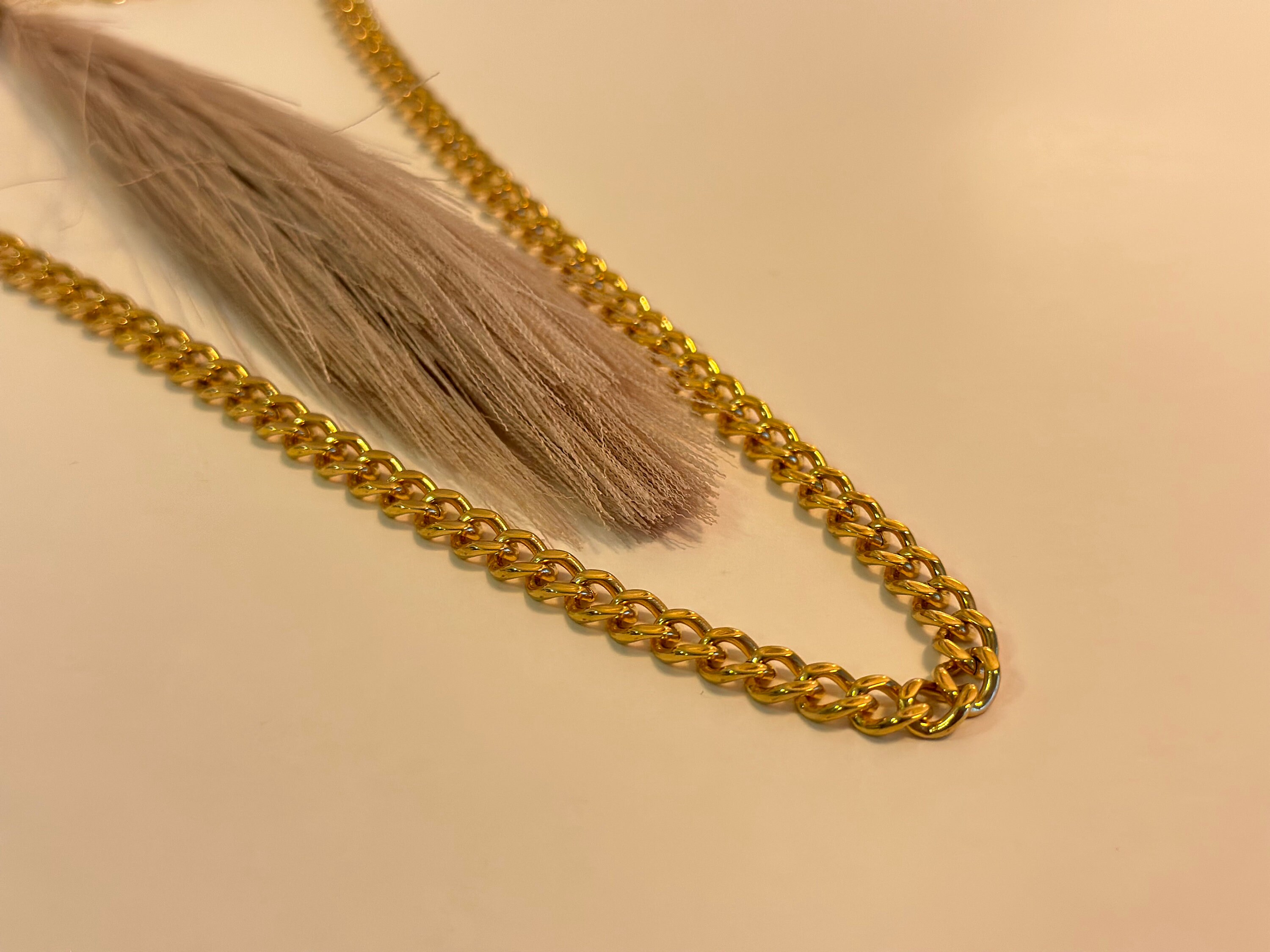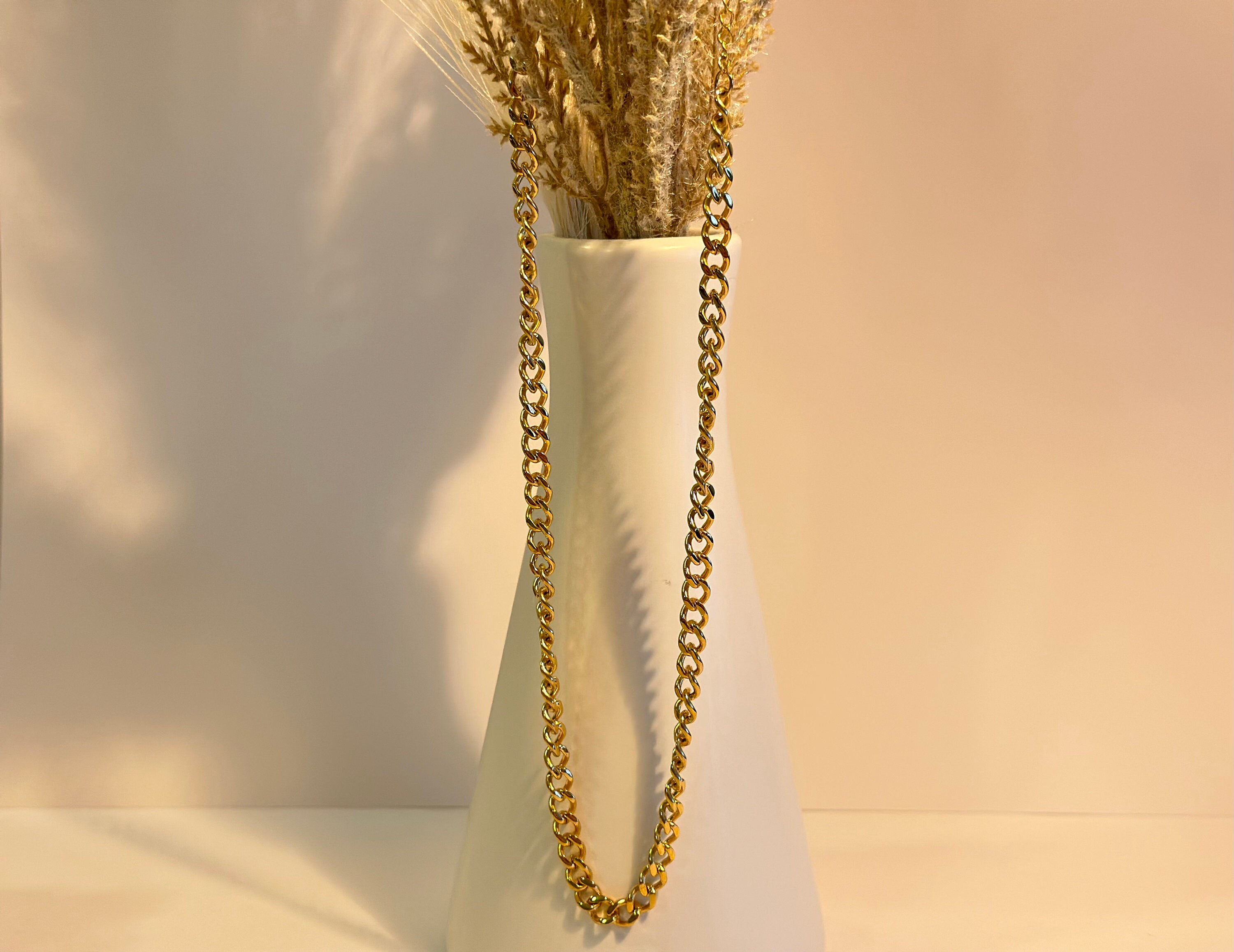 This Glamorous 18K Gold Filled Stainless Steel Thick Cuban Chain Necklace for Women is the perfect accessory to add a touch of luxury to any outfit. Crafted from high-quality stainless steel and filled with 18K gold, this necklace is sure to make a statement. The thick Cuban chain design adds a bold and stylish look that will turn heads wherever you go. The lobster clasp closure ensures a secure fit, while the adjustable length allows you to customize the fit for your desired look. Whether you're dressing up for a special occasion or just want to add some sparkle to your everyday style, this necklace is sure to be your go-to accessory.