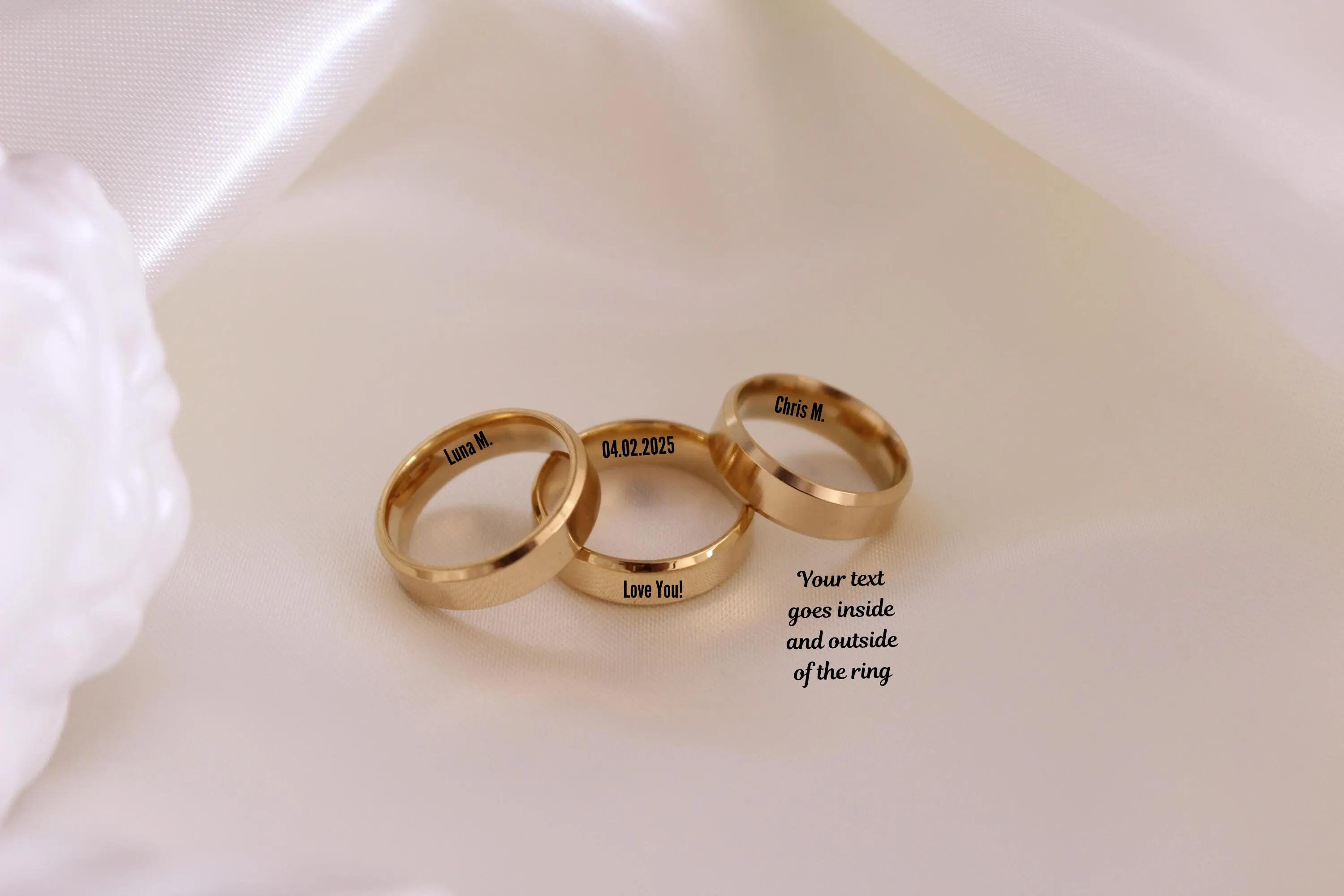 Order now and give the gift of love with these engraved wedding rings, perfect for anniversaries, weddings, or special moments with the one you hold dear!