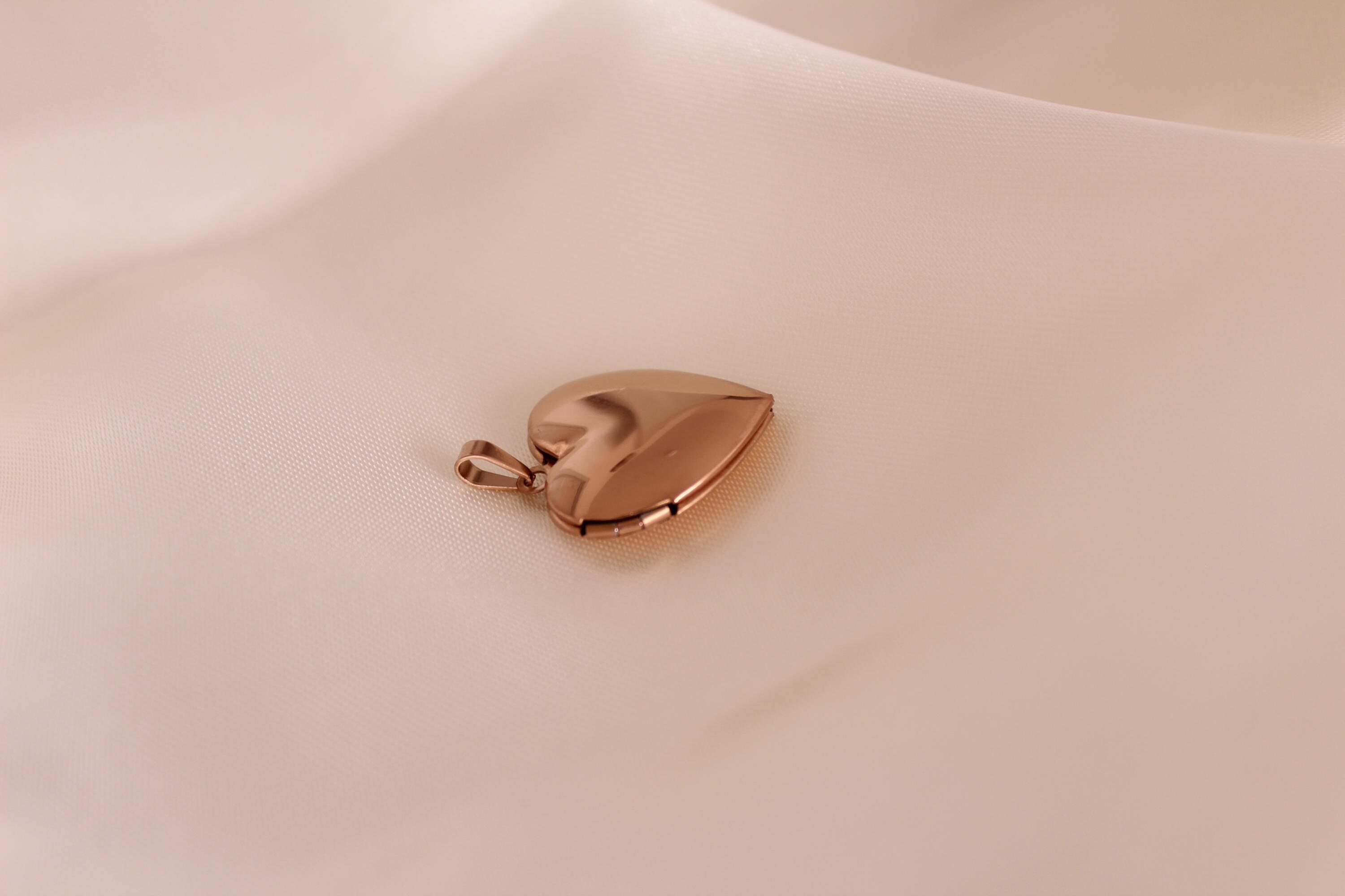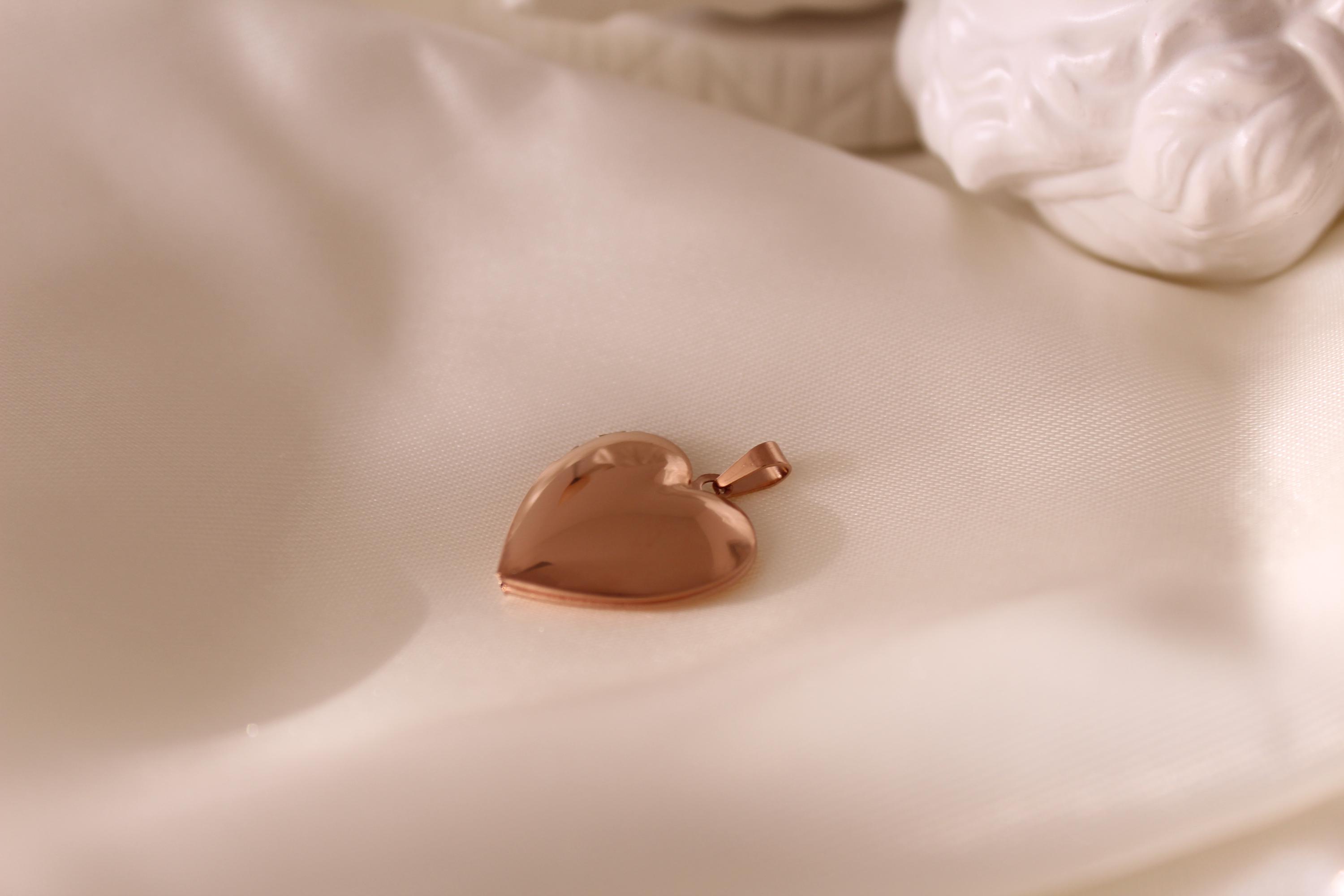 Design: Heart-shaped locket with two compartments to hold photos or small engravings
