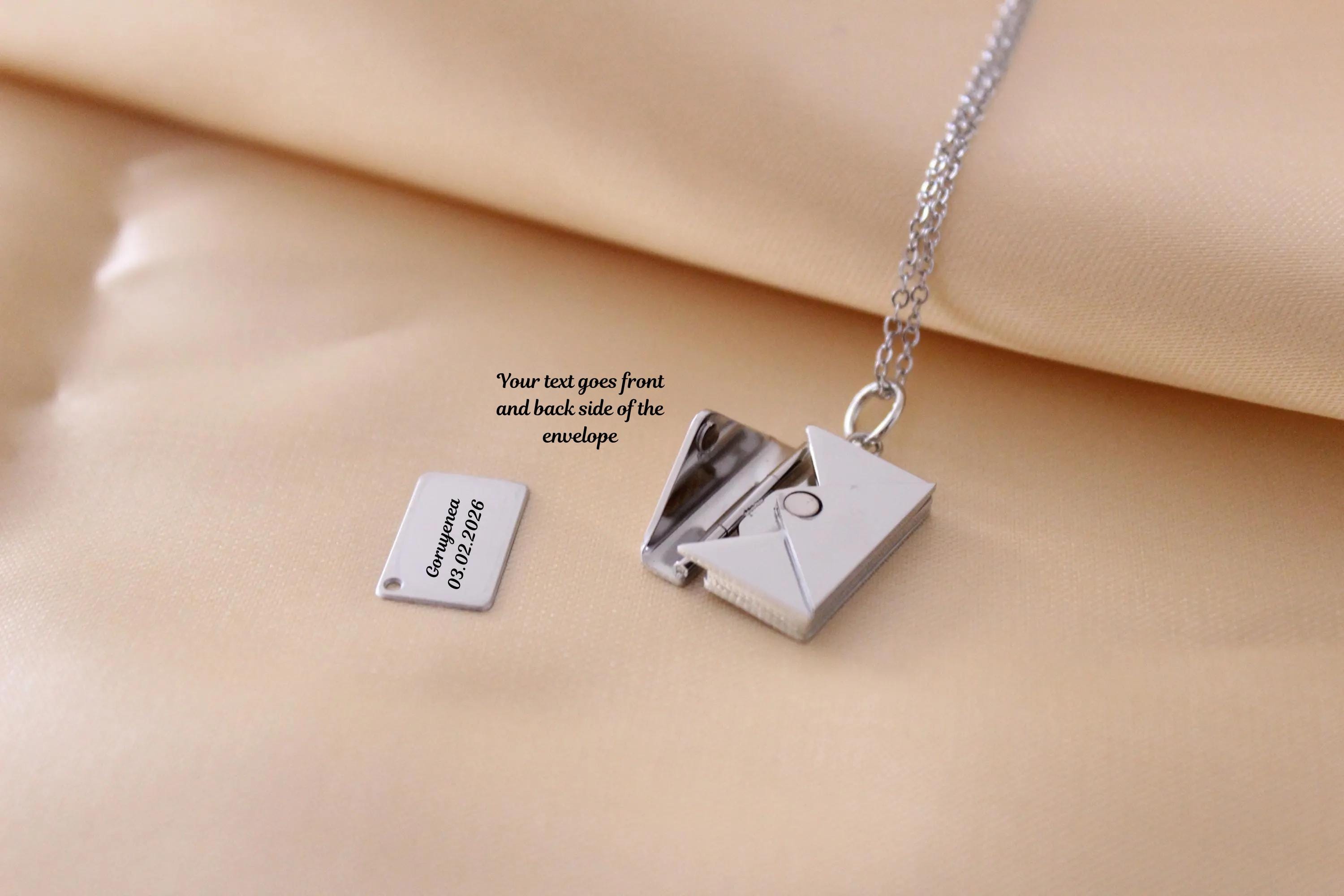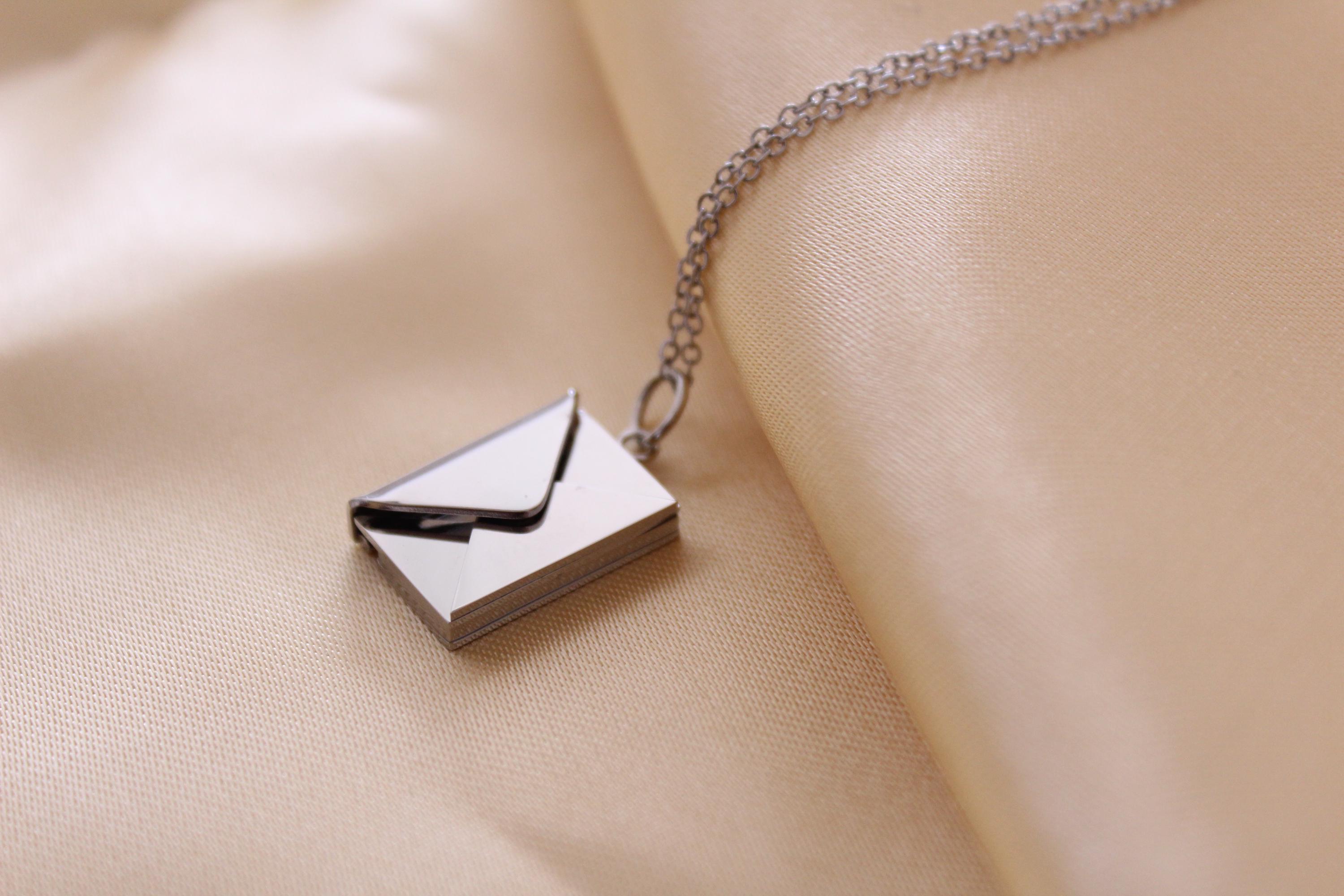 Customized & Engraved Love Letter Envelope Necklace – Stainless Steel Locket Pendant Necklace