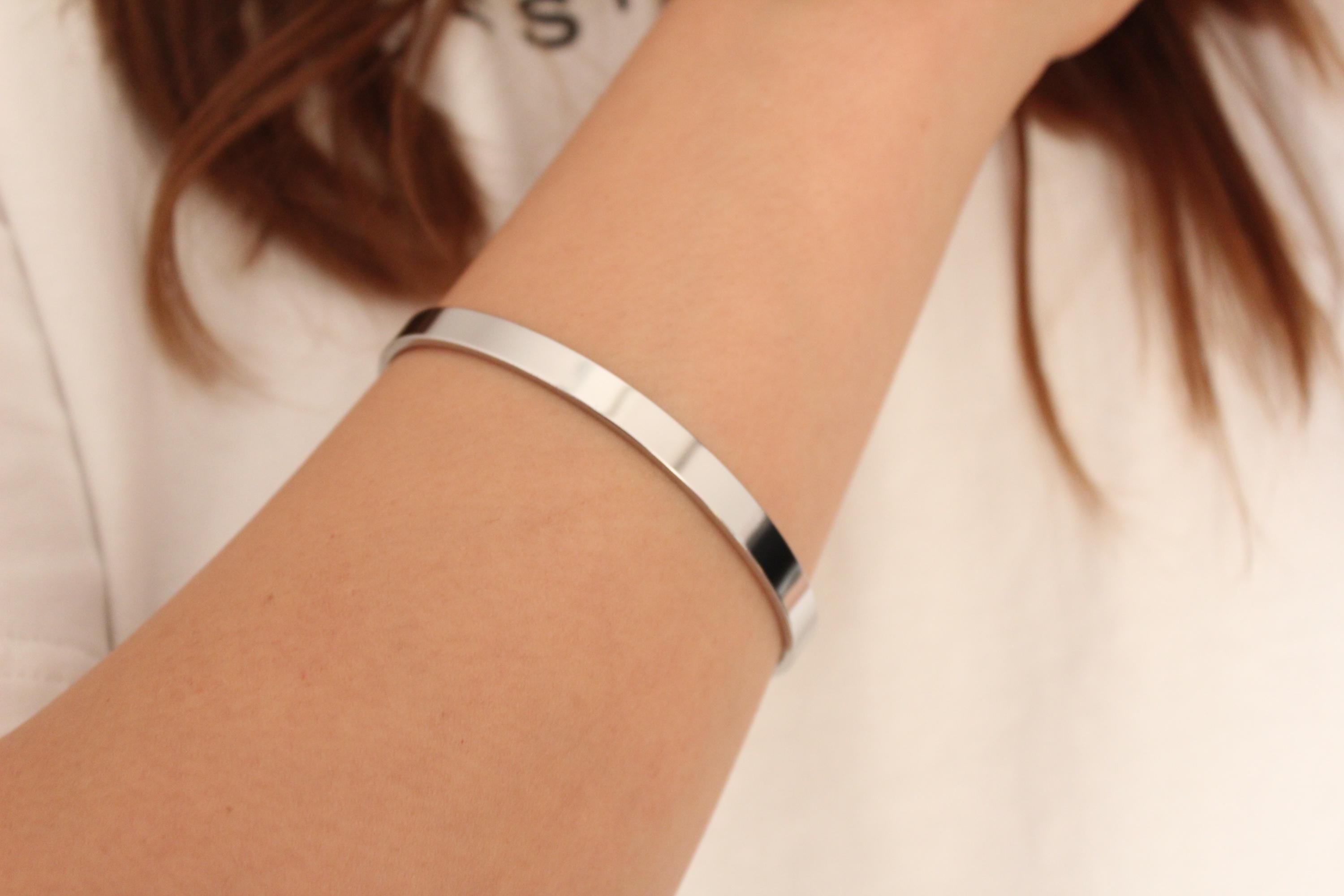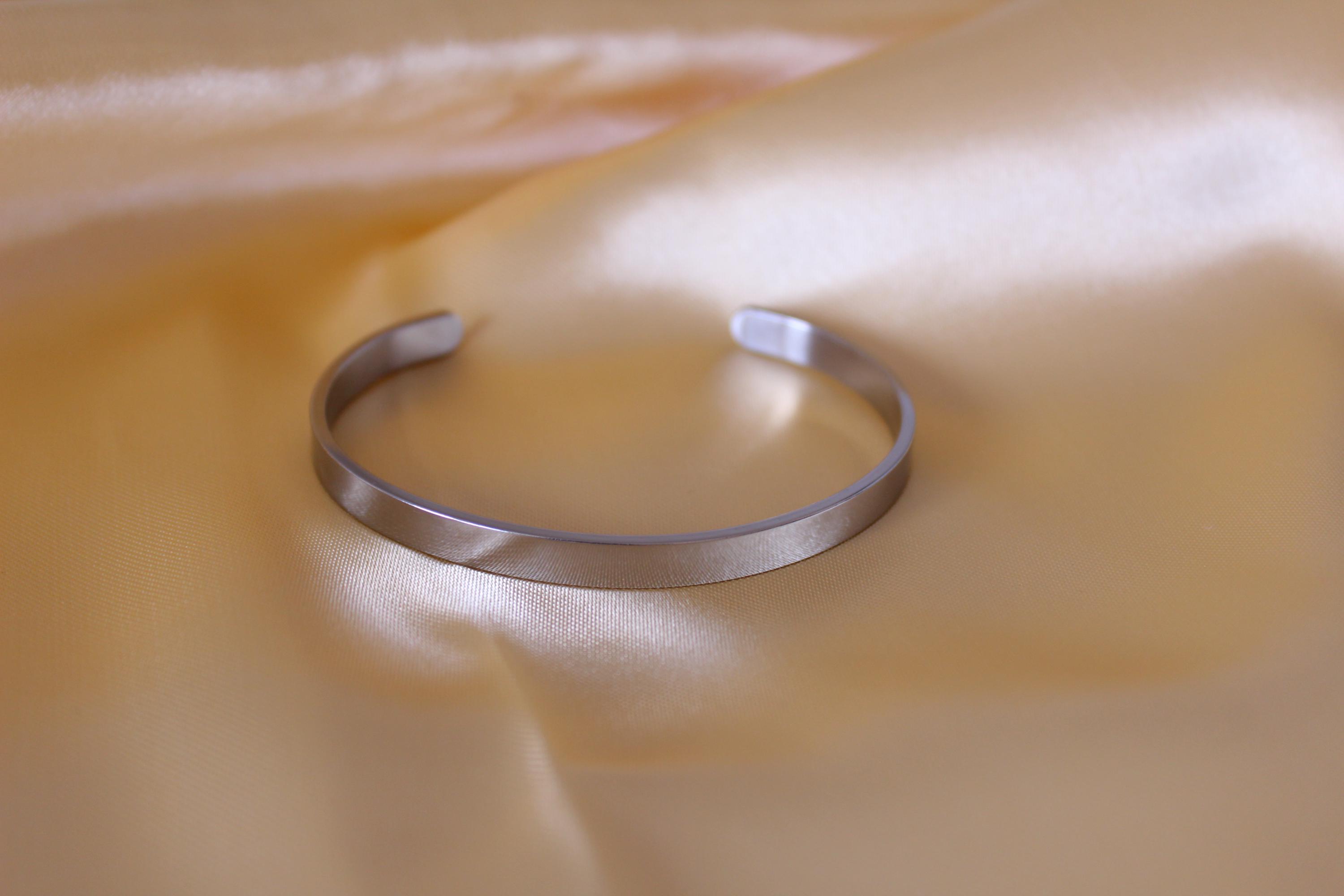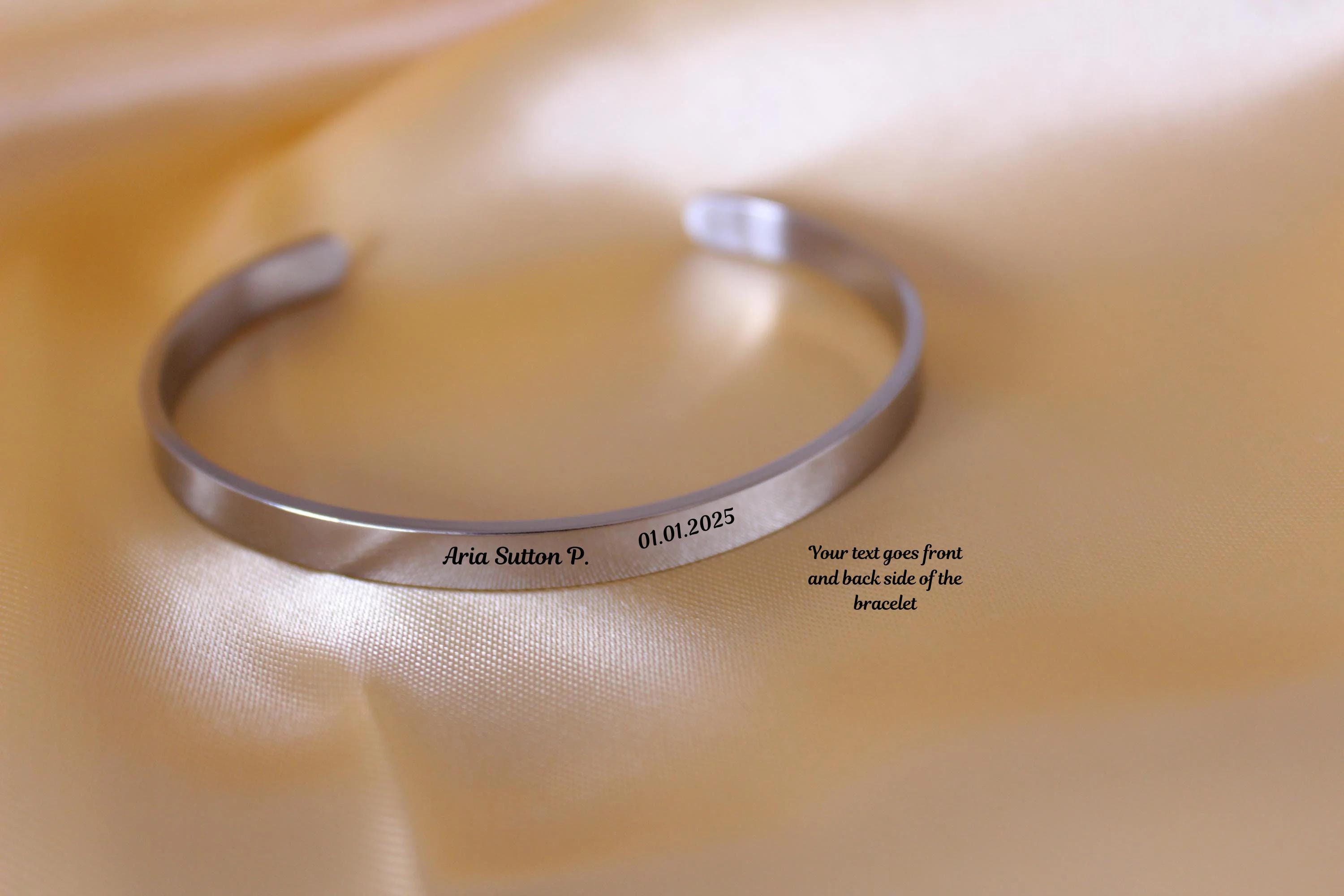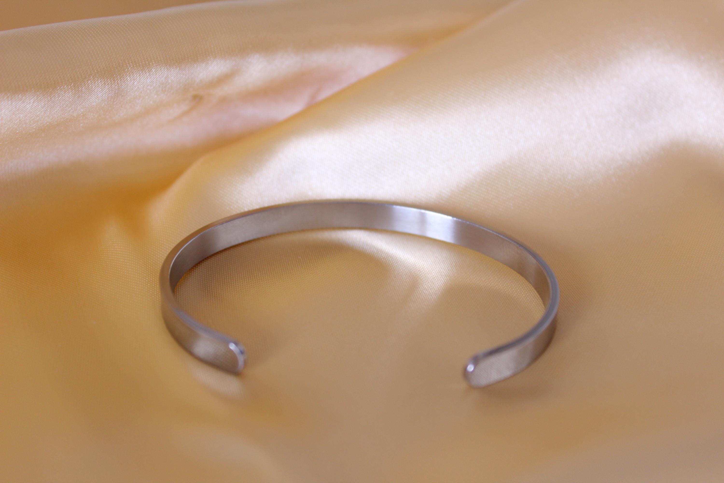 The bracelet features an adjustable design, ensuring a comfortable fit for any wrist size. The clean, polished surface is ideal for engraving, allowing you to add a personal touch with a name, special date, or meaningful message. This customization transforms the bracelet into a unique and heartfelt gift, perfect for anniversaries, birthdays, or any special moment you want to commemorate.