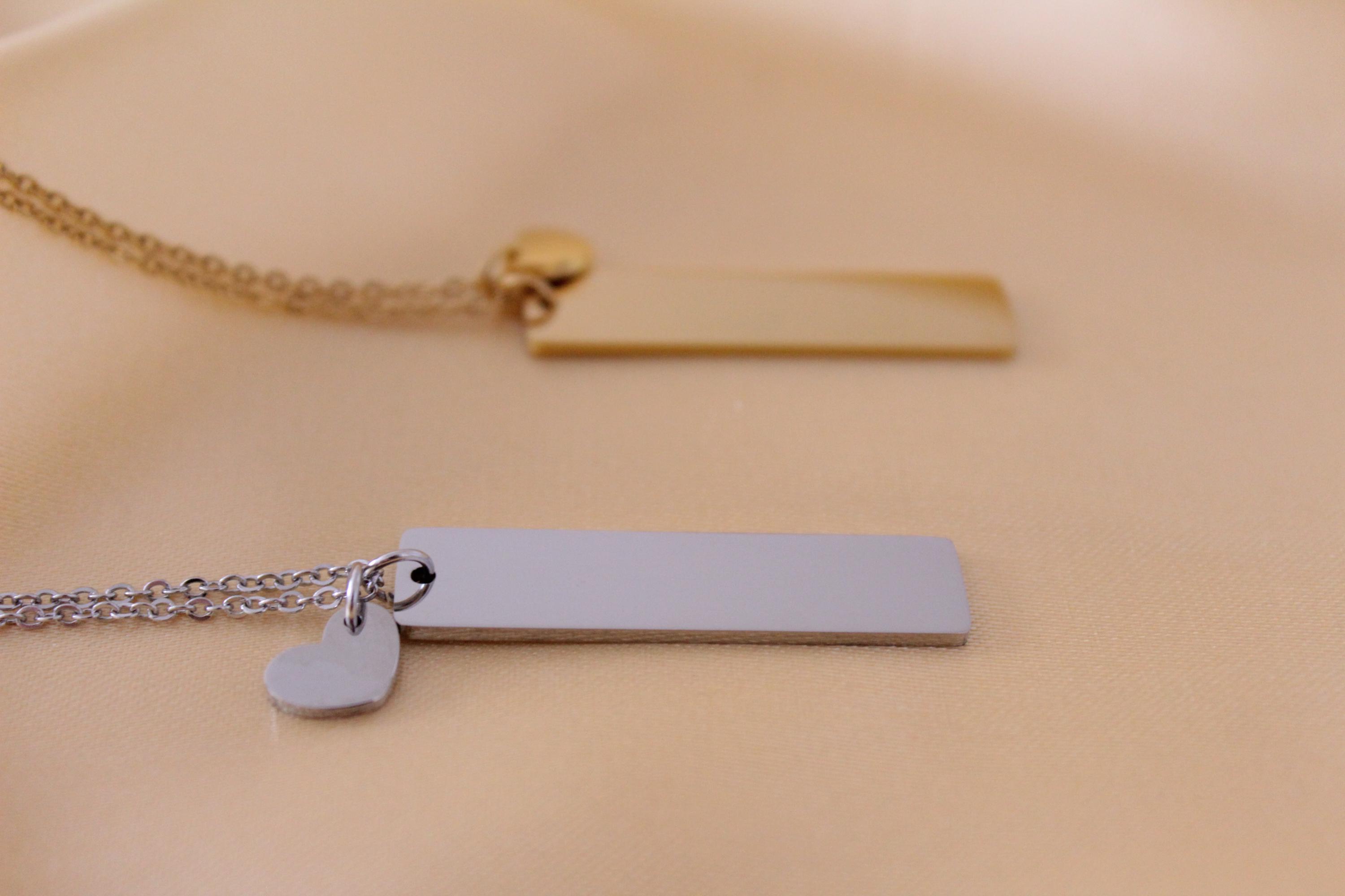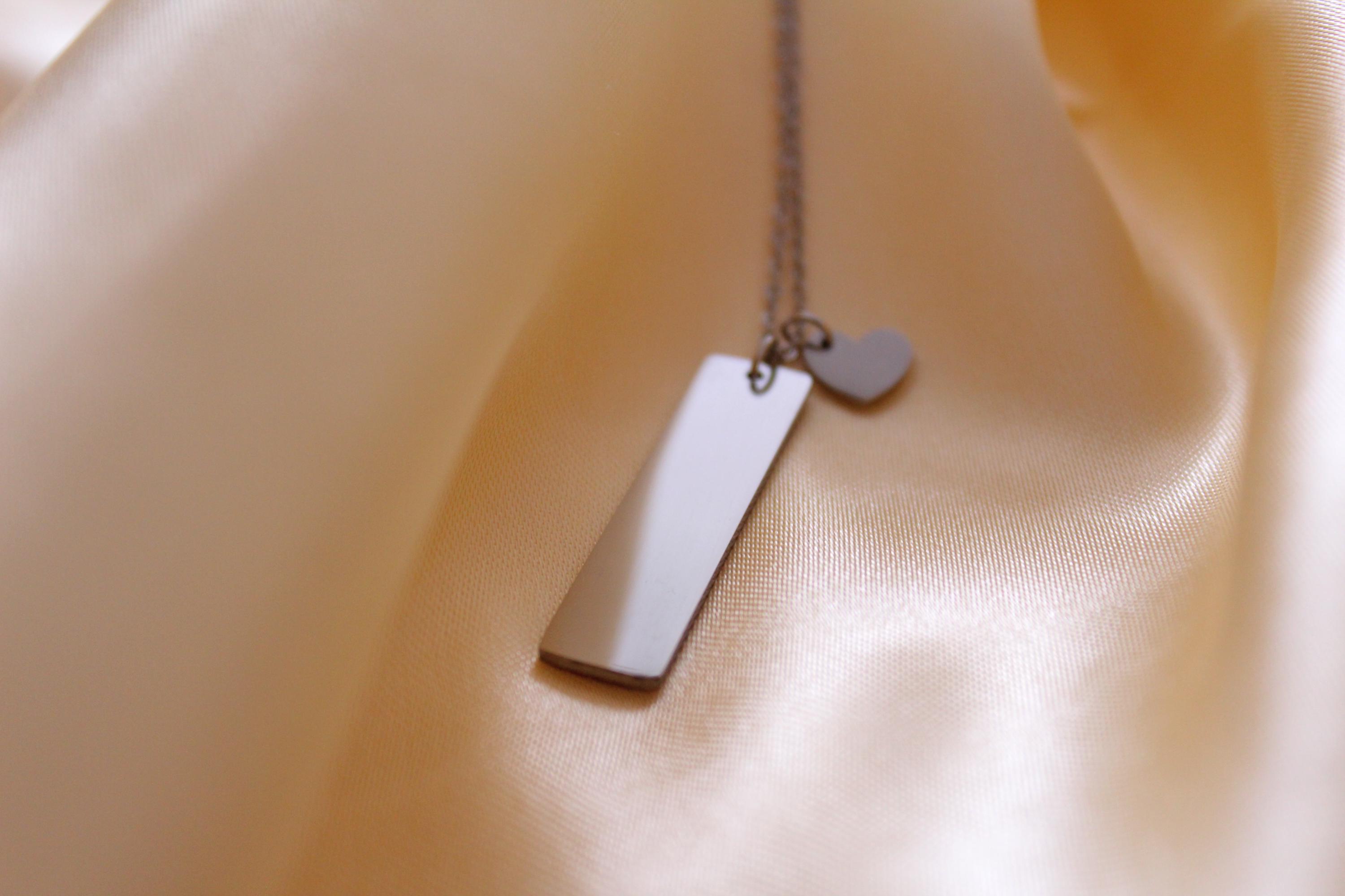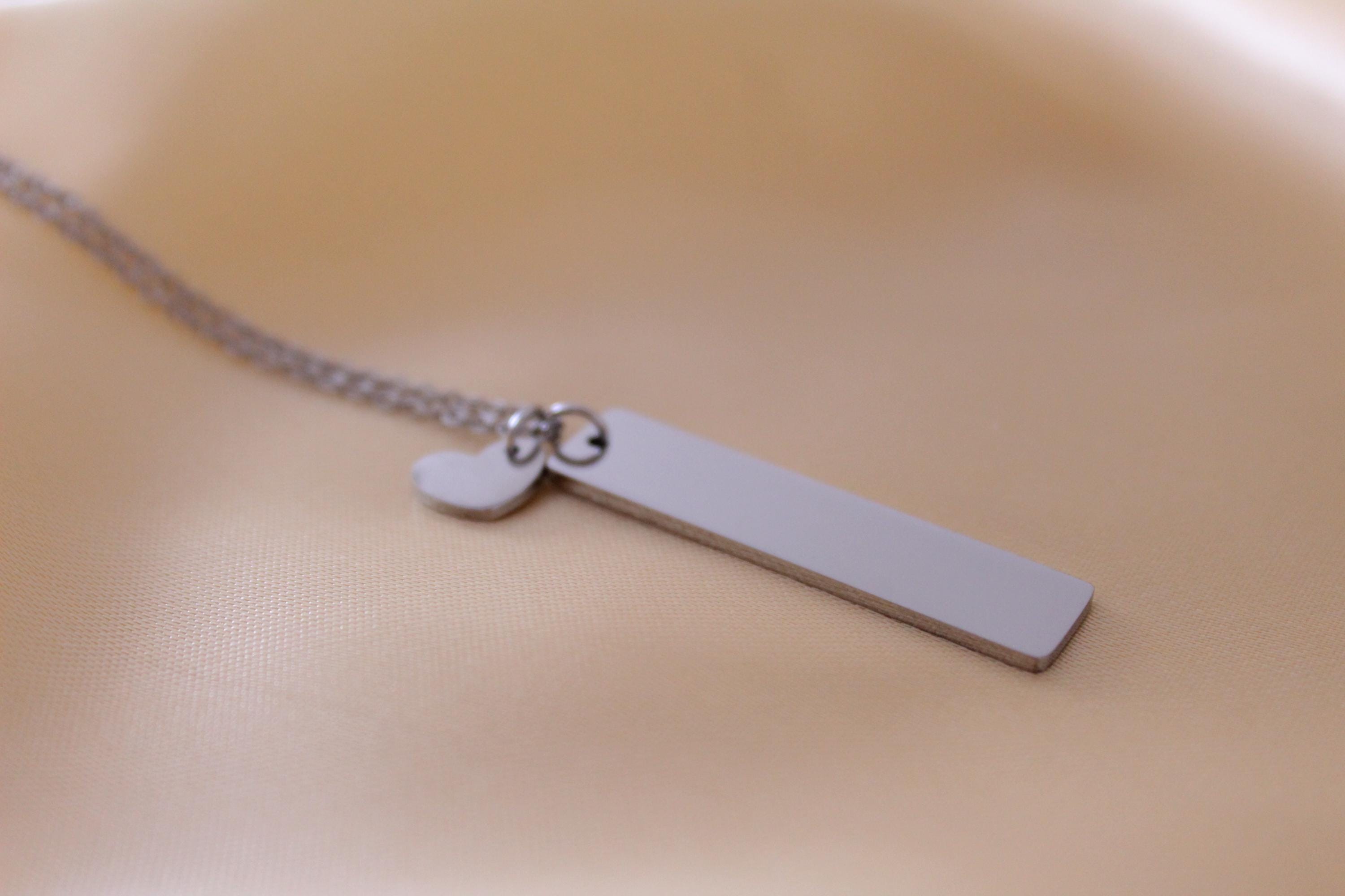 Customized & Engraved Heart and Square Silver Pendant Necklace, Engraved Stainless Steel Necklace, Blank Vertical Bar, gift for her, Gifts