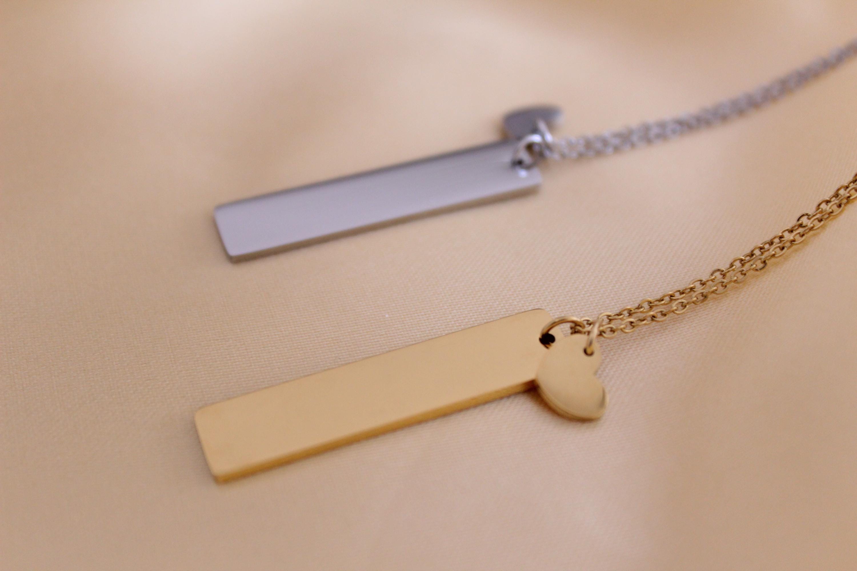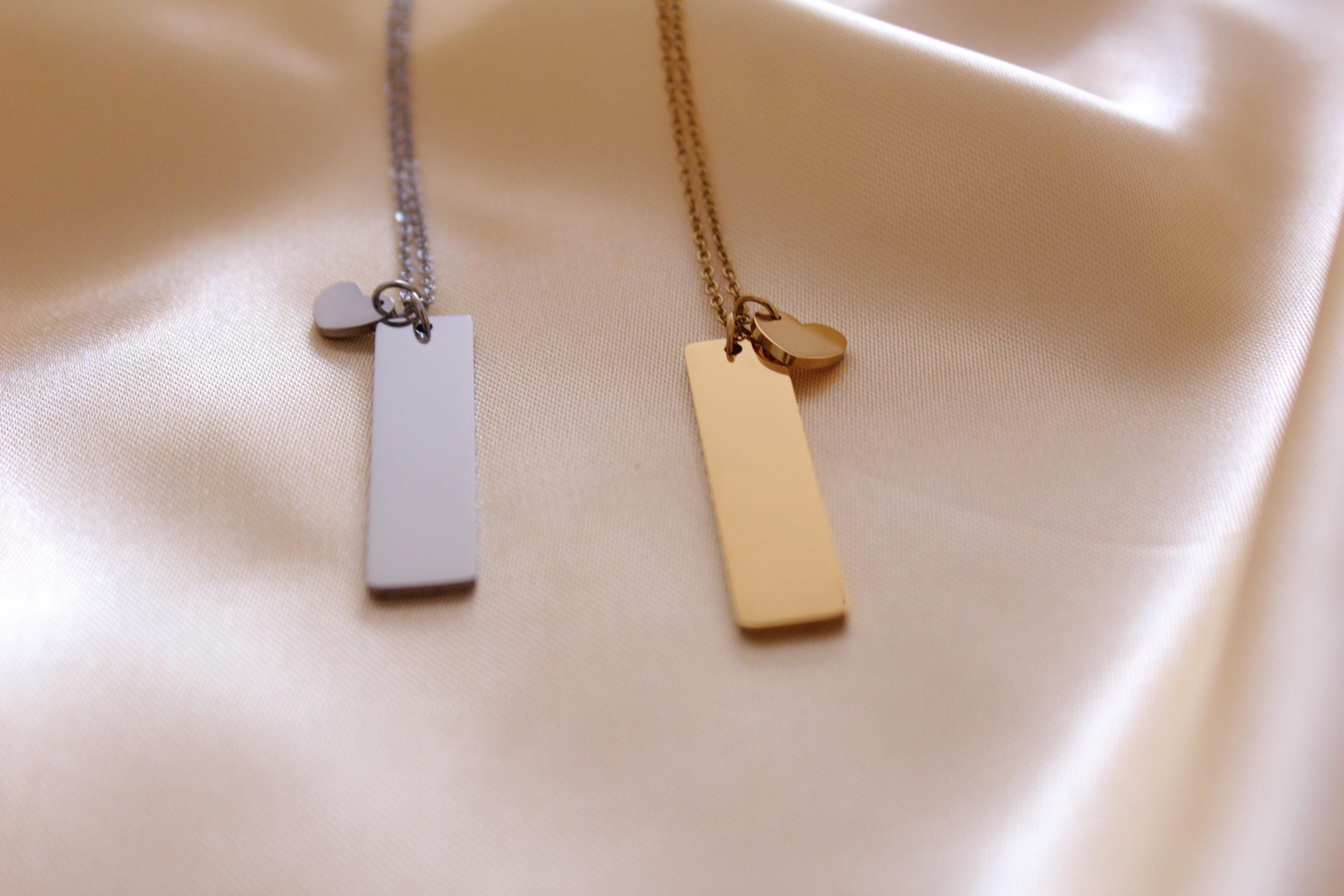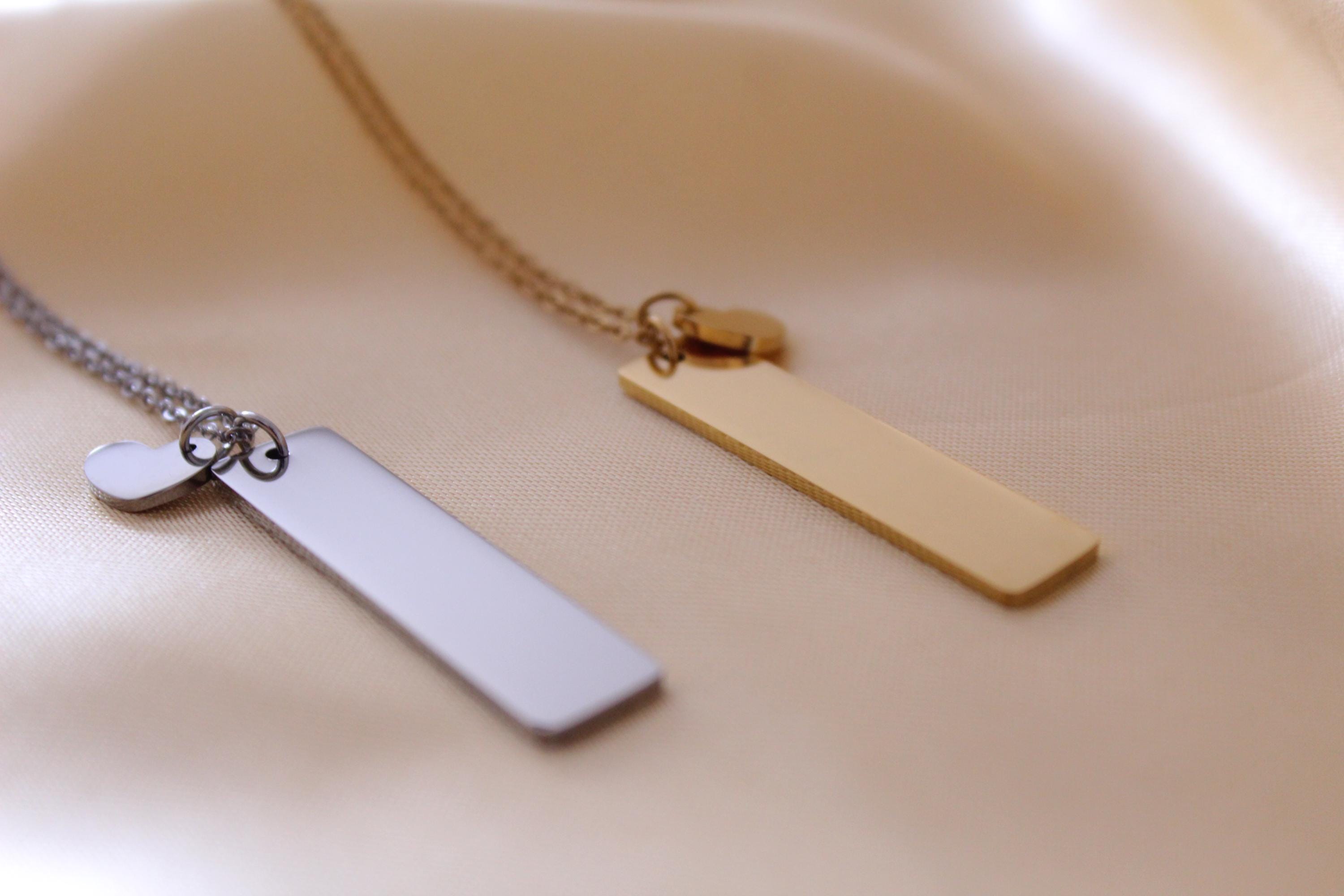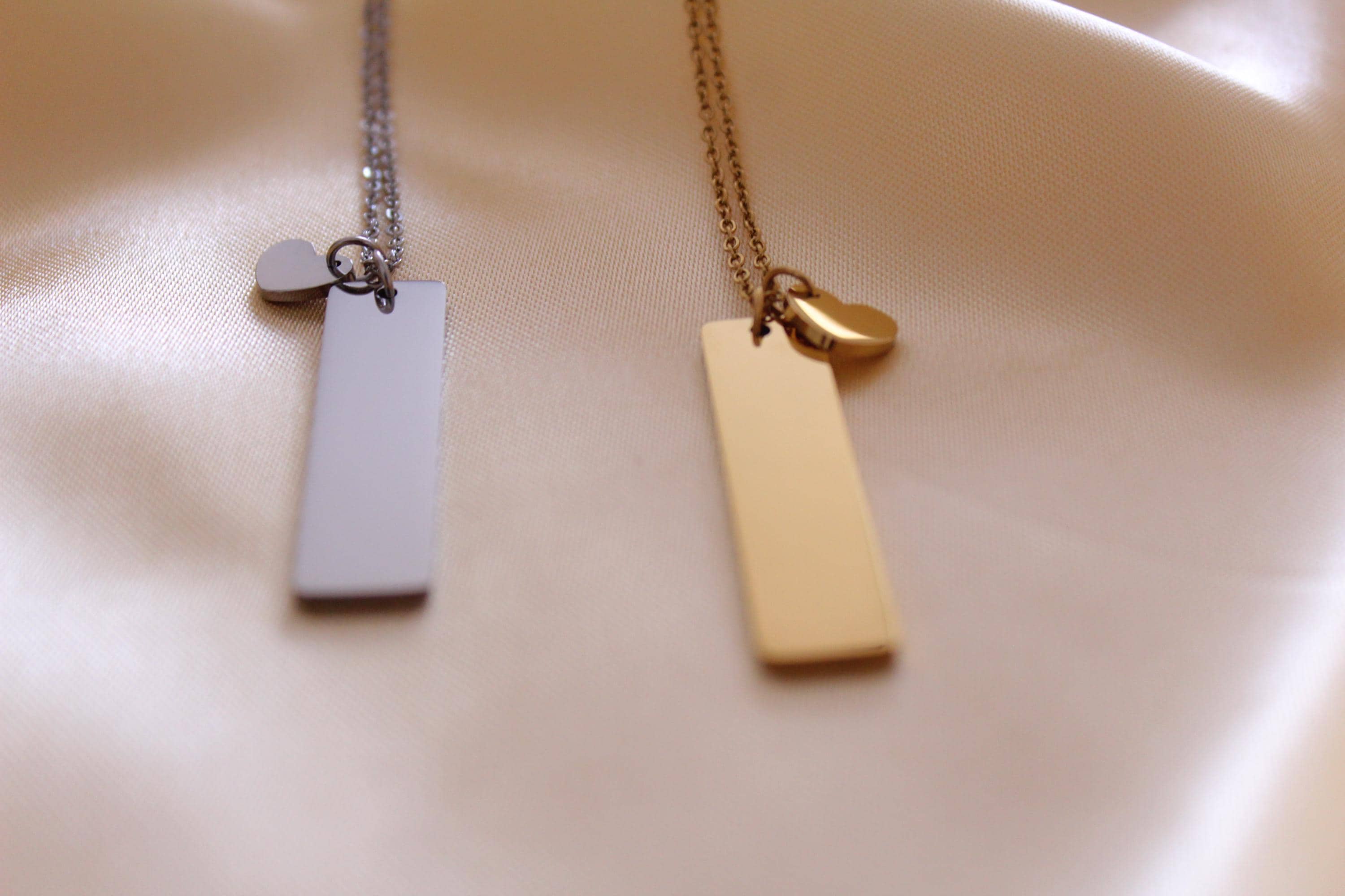 Customized & Engraved Heart and Square Pendant Necklace – Engravable Stainless Steel Necklace with Blank Vertical Bar