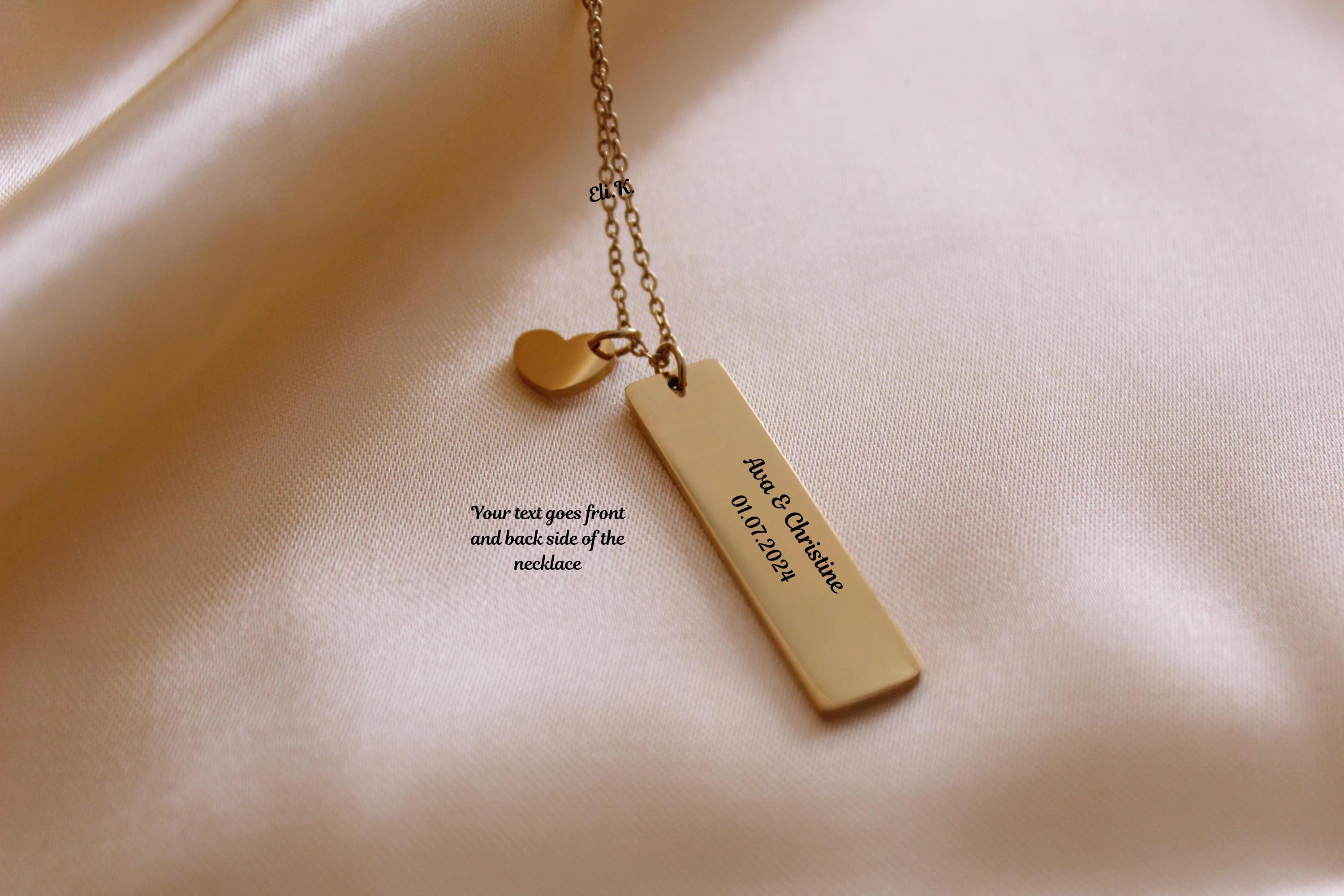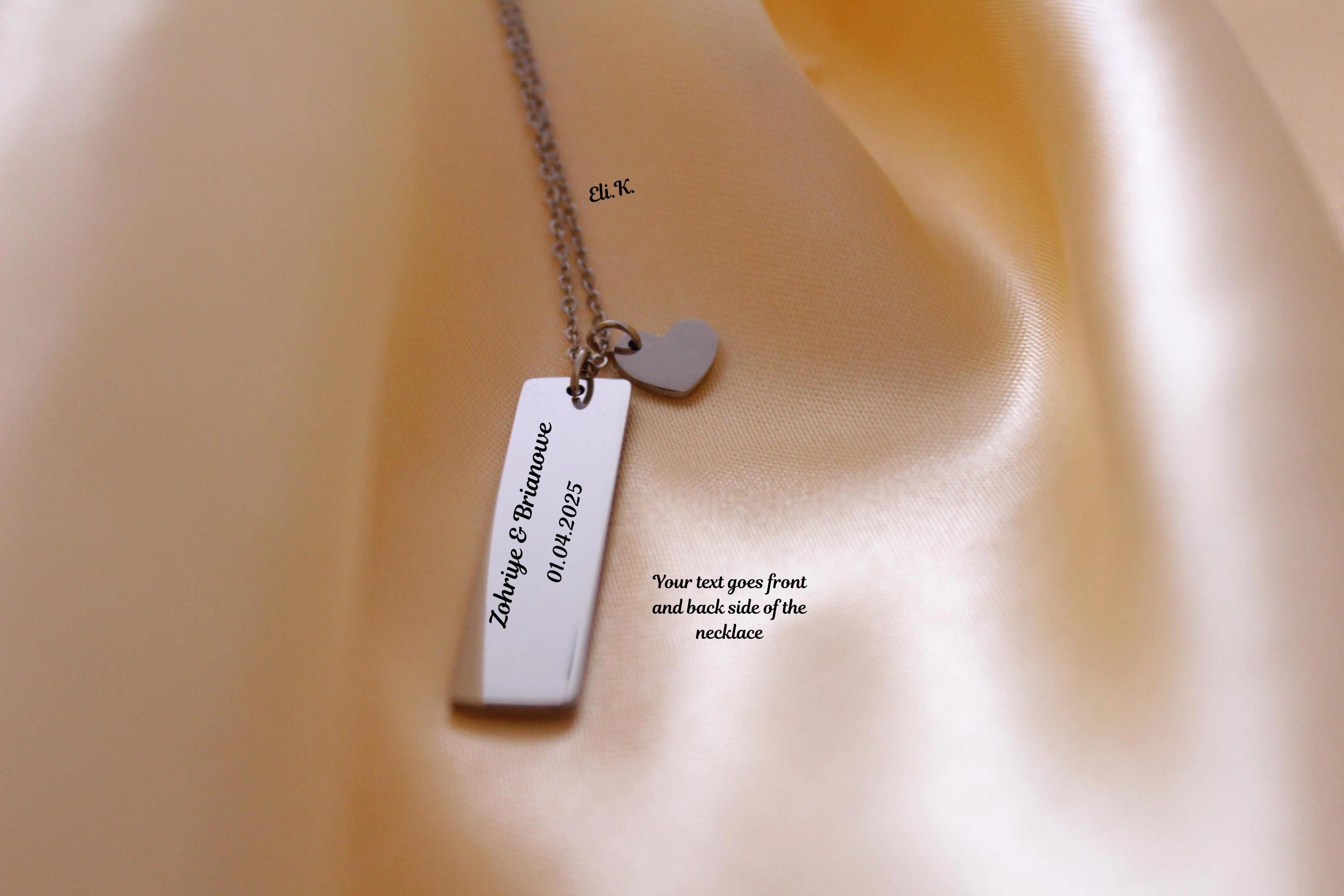 Customized & Engraved Heart and Square Pendant Necklace, Engravable Stainless Steel Necklace, Blank Vertical Bar, gift for her, Mothers Gift