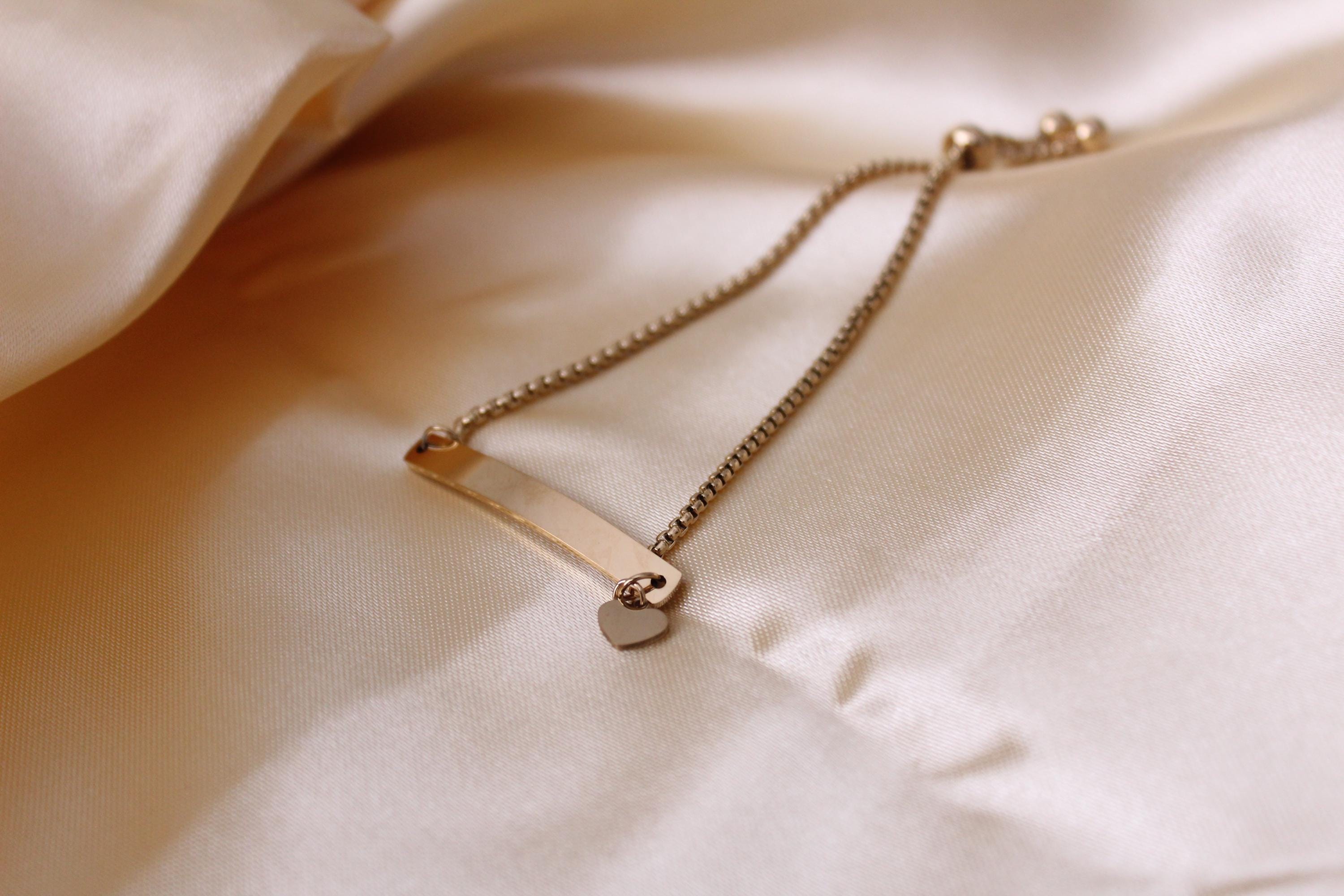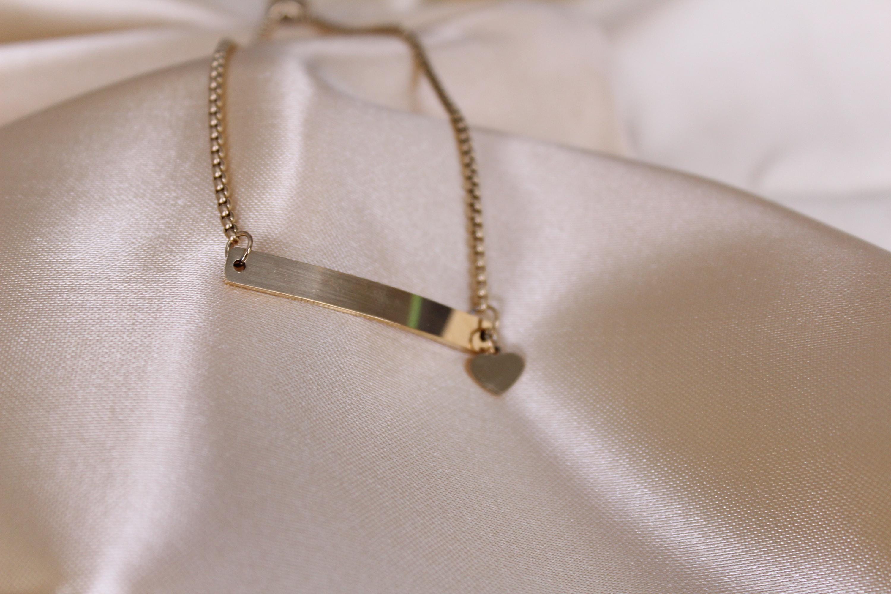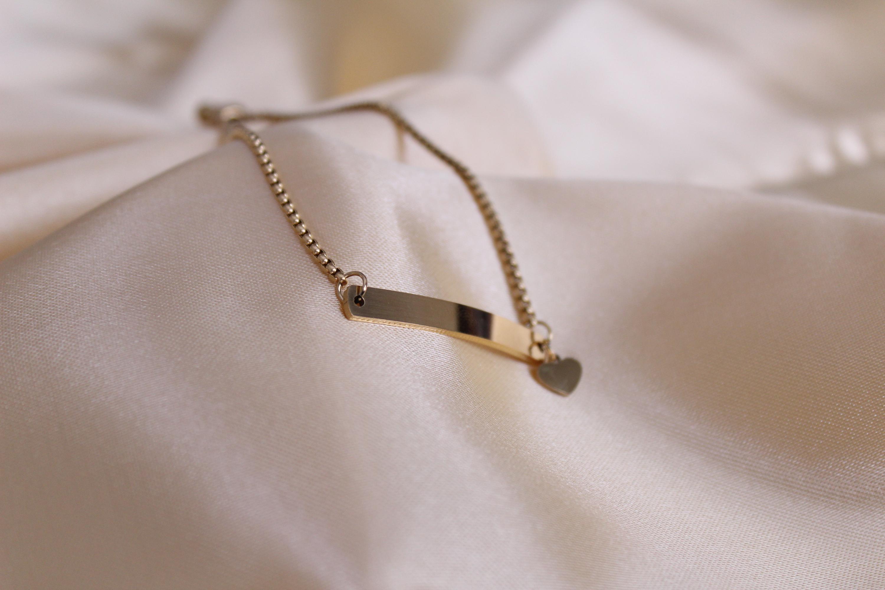 Personalized 18k Gold Bar Bangle, Custom Name Heart Bracelet, Charms Heart Bracelet, Elegant Gift for Women & Girls, Gift for Her