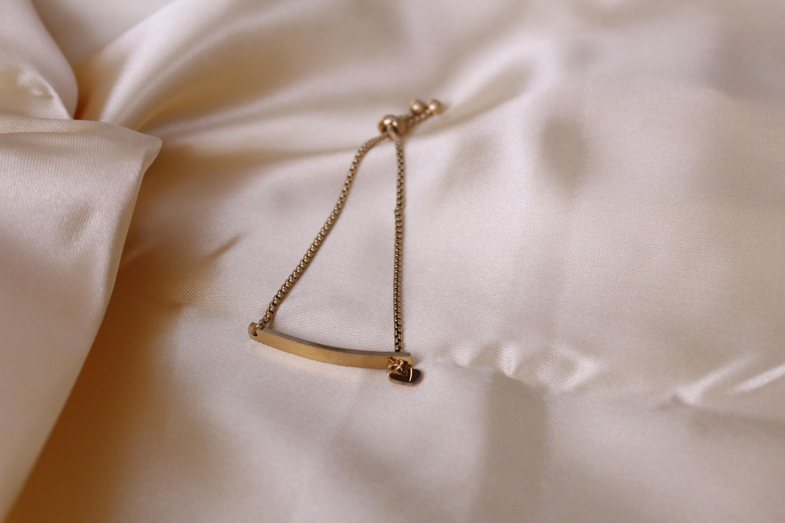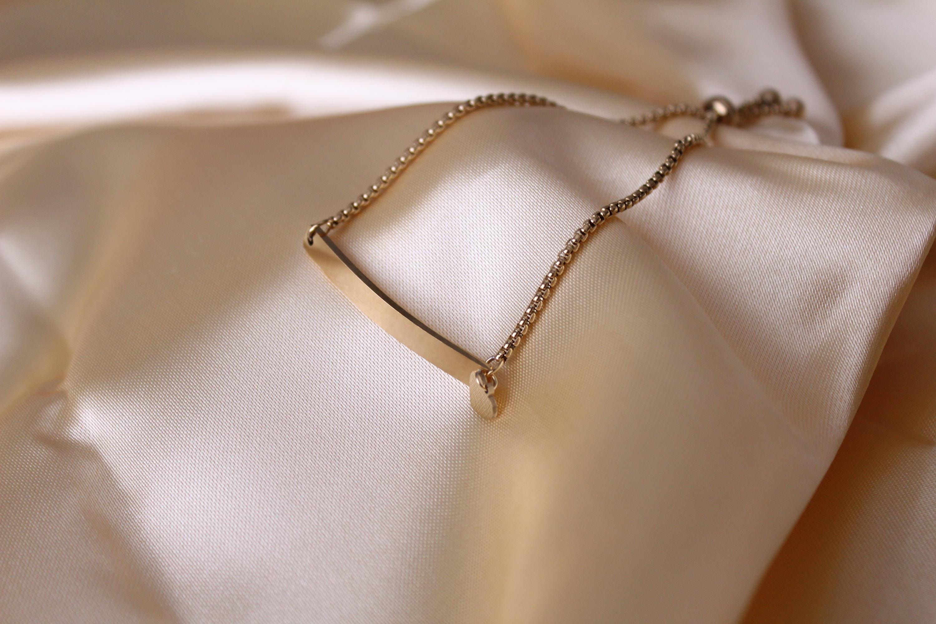 This personalized 18k gold bar bangle is a luxurious and stylish accessory designed to make a statement. Crafted from high-quality 18k gold, the bangle has a polished, radiant finish that shines beautifully, adding a touch of elegance to any outfit. The standout feature of this bracelet is the custom-engraved bar, which can be personalized with a name, initials, or a special message, creating a truly unique and meaningful piece of jewelry.